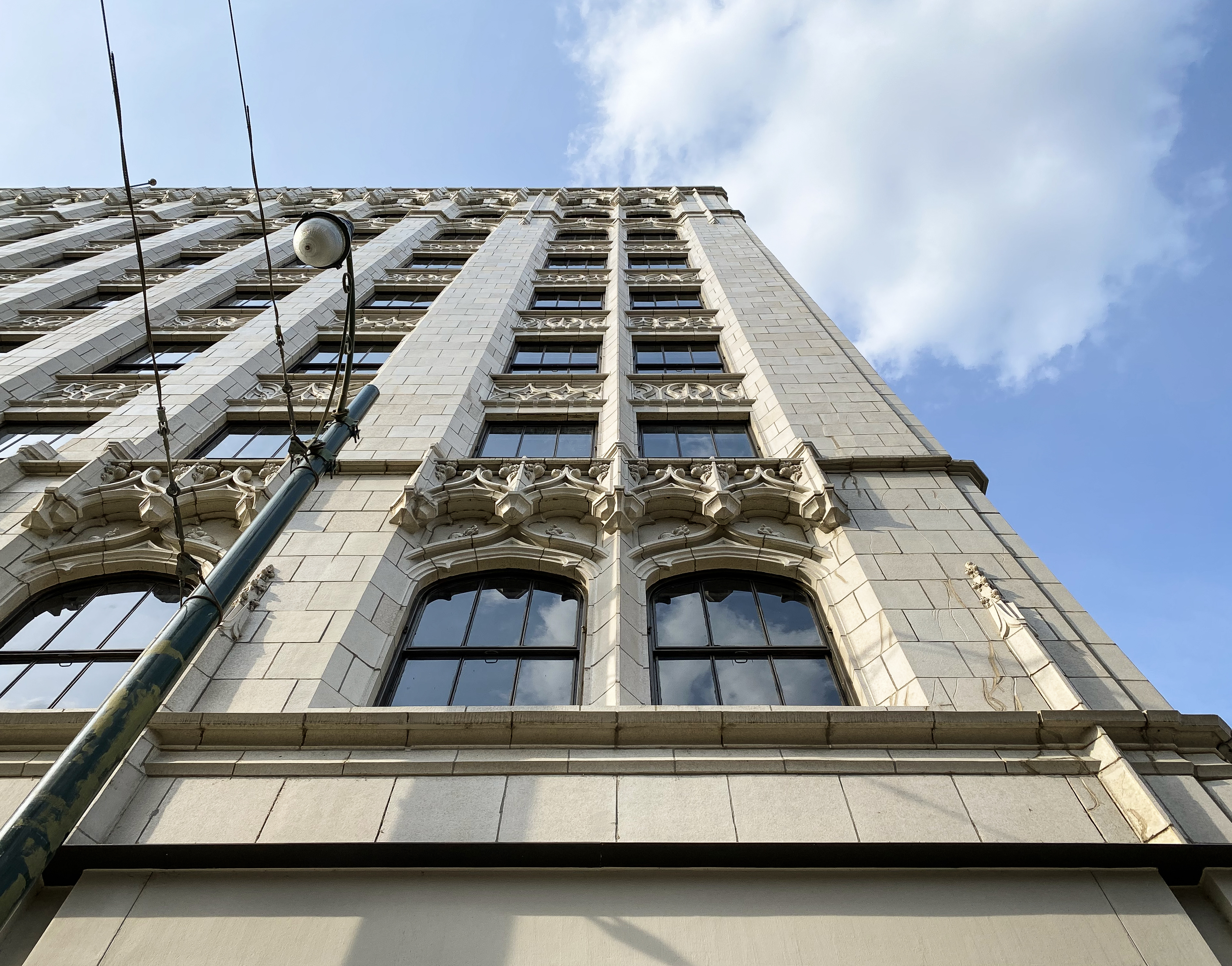 1 – The sensitive approach to the restoration of the iconic 1925 Gothic Revival design reestablishes The Commonwealth as one of the city’s most precious historic architectural landmarks. The cleaned, deeply-cut white glazed terracotta and restored steel windows add sparkle to the eastern edge of downtown. Photo by Dalton Green