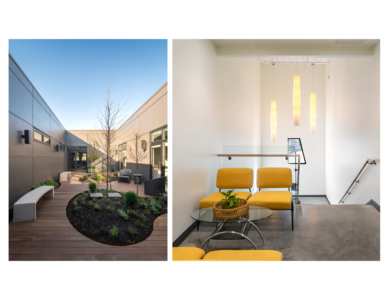 8- Birthing suites courtyard; South stair lobby. Photo courtesy of firm.