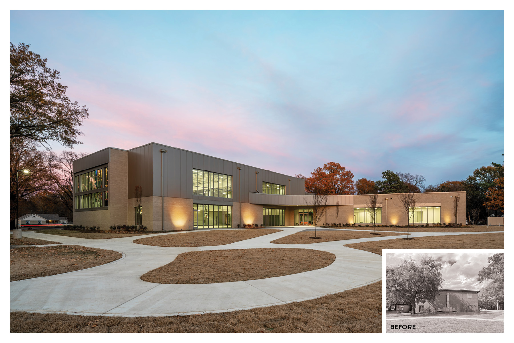 01- It was essential to the City of Memphis and the Berclair neighborhood for the new center to be part of the park and nestle within the trees, welcoming all. Photo by Ken West Photography