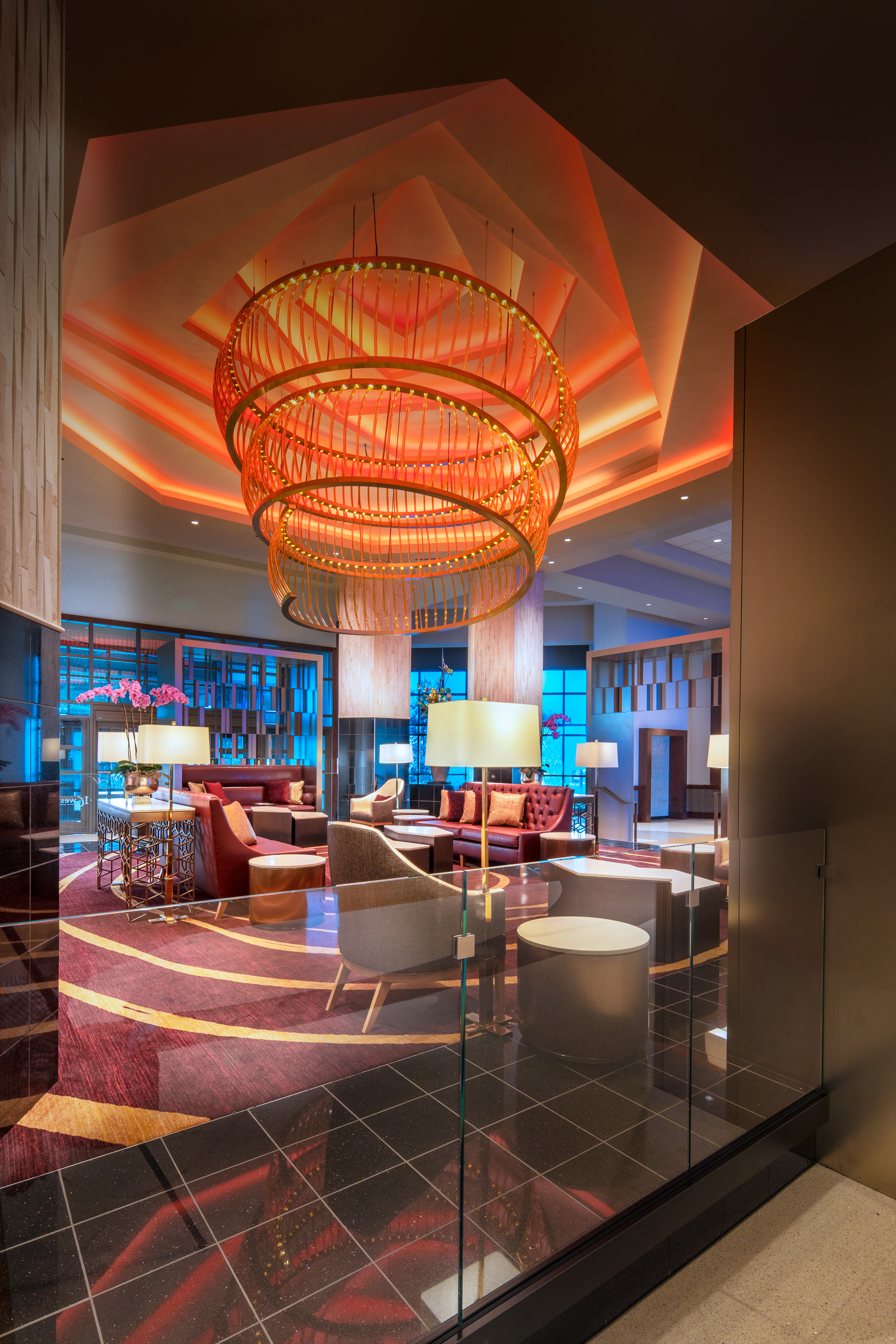 7. The C2 Steak & Seafood restaurant’s rich custom millwork and dramatic glass globe pendant light wall emulates the bounty of the valley’s wine country and cattle farms.