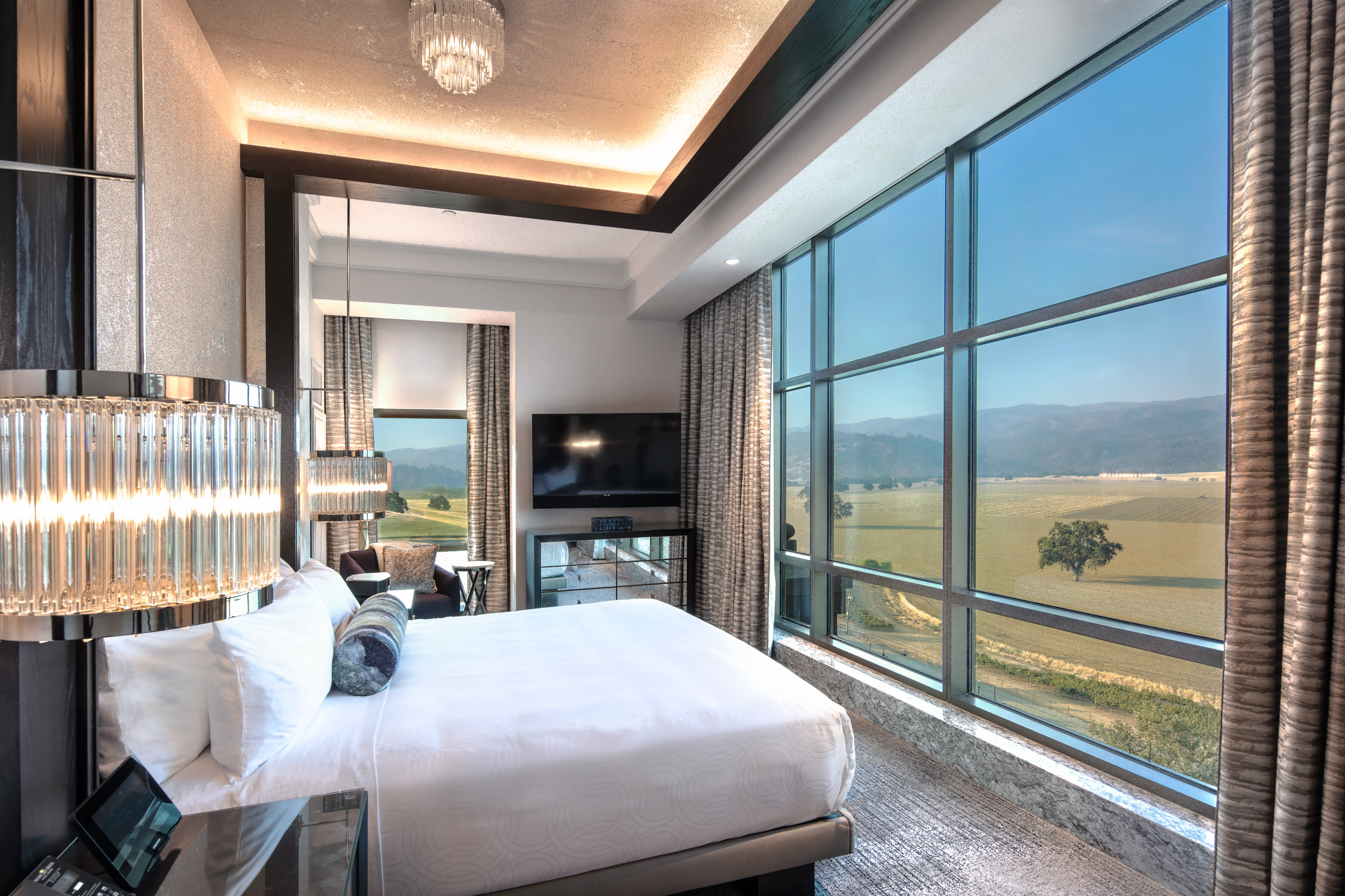 Capay Valley is host to abundant life in the forms of flora that change through the seasons to the animals and insects that animate and give the rolling hills life. Through the seasons, the landscape evolves – as seen throughout the hotel’s rich, refined pattern, texture and color palette and intricate structural geometry inspired by delicate almond blossoms, grassy hills, saturated wildflowers, olive groves and tomatoes and grapes as they ripen on the vine under the warm sun. This contextual design springs to life inside the new hotel lounges, dining venues, guestrooms and suites with a serene and elegant interpretation of the agrarian landscape and wide-open views to the picturesque valley.