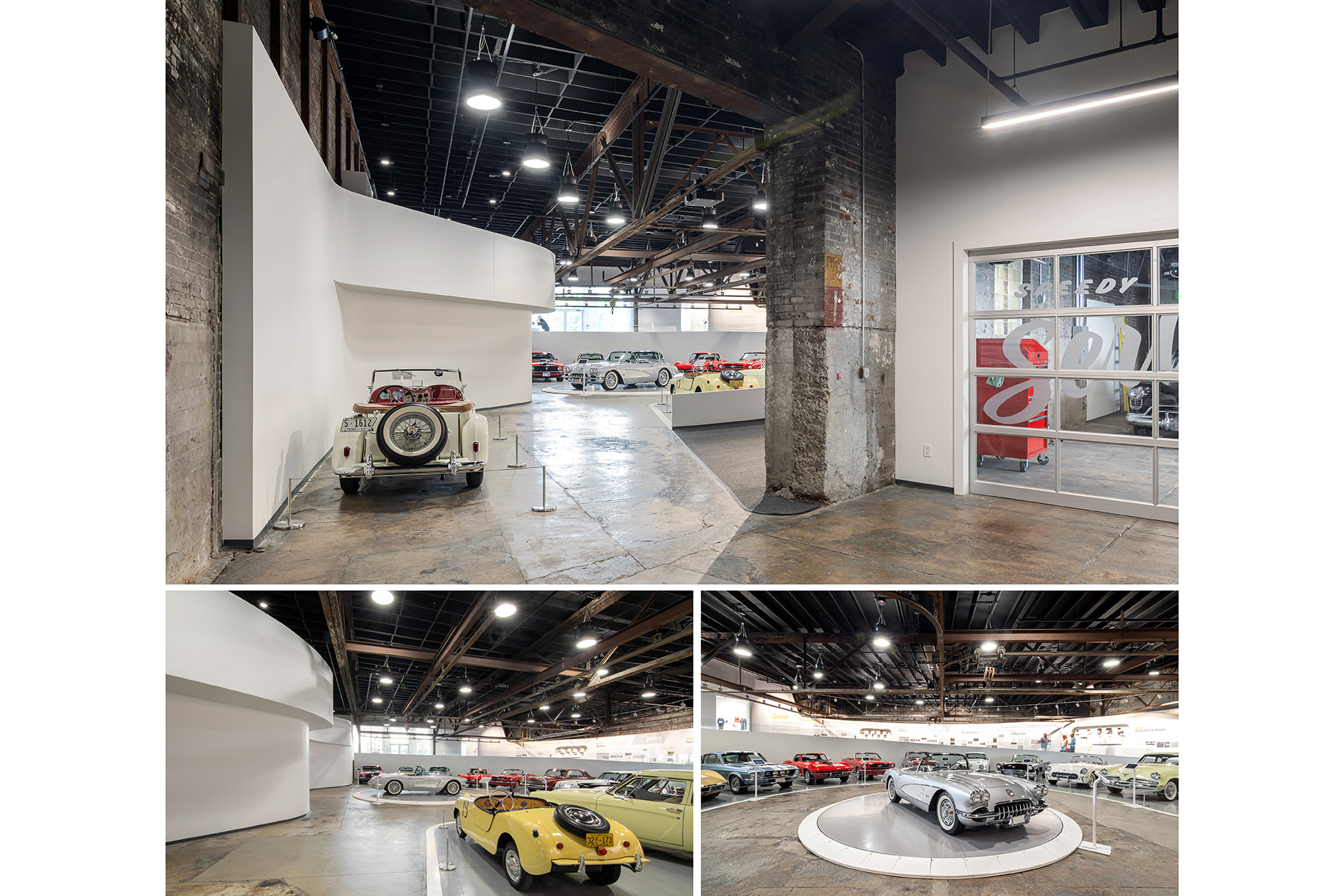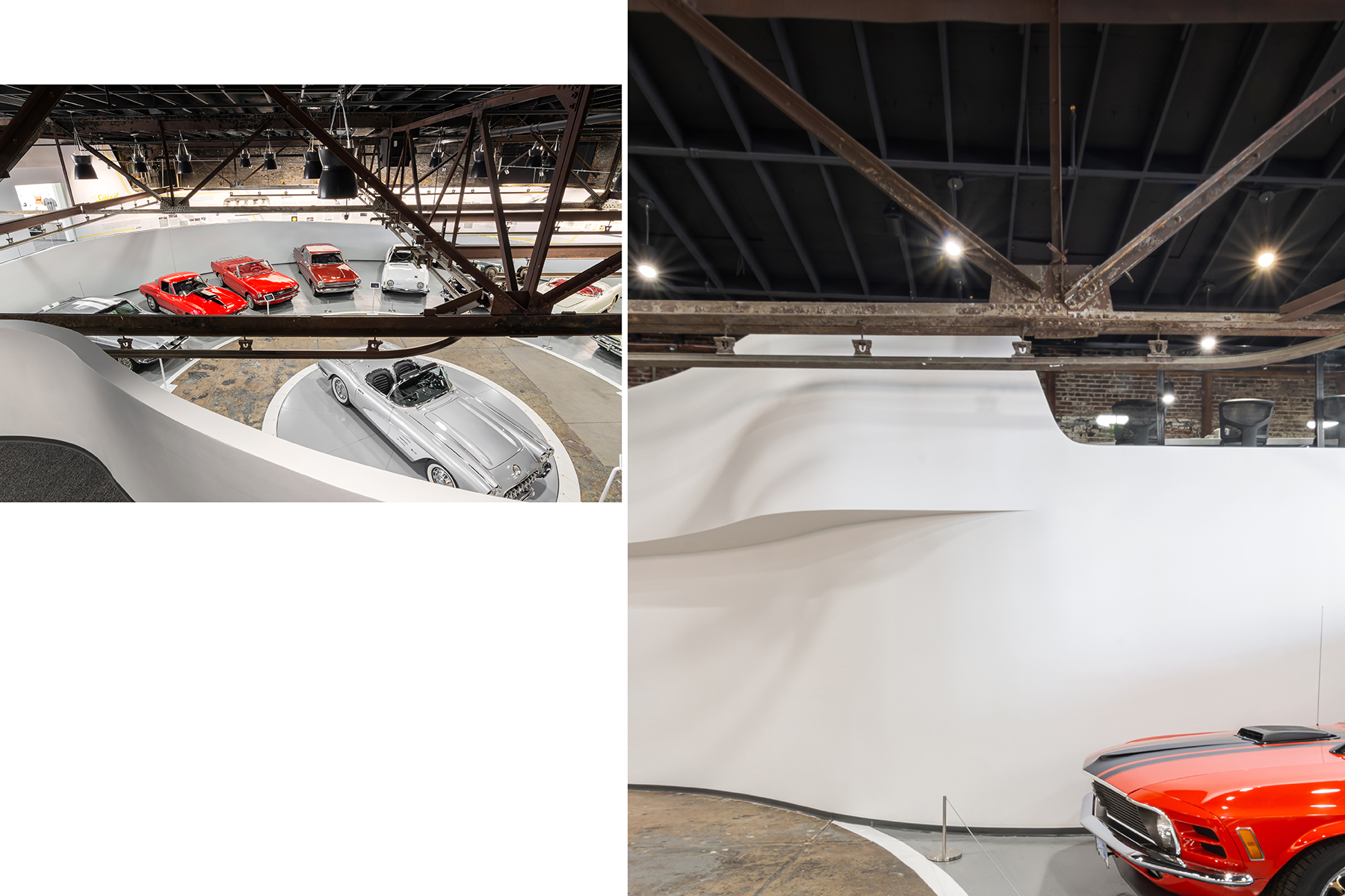 Our client first approached us with a request to help him with a “warehouse to park cars”. After several conversations, it became clear that his passion for the history and storytelling of the automobile and its impact on American culture warranted a special place for these stories and the cars behind them. As such, the place had to be more than simply a warehouse in which to park cars.
