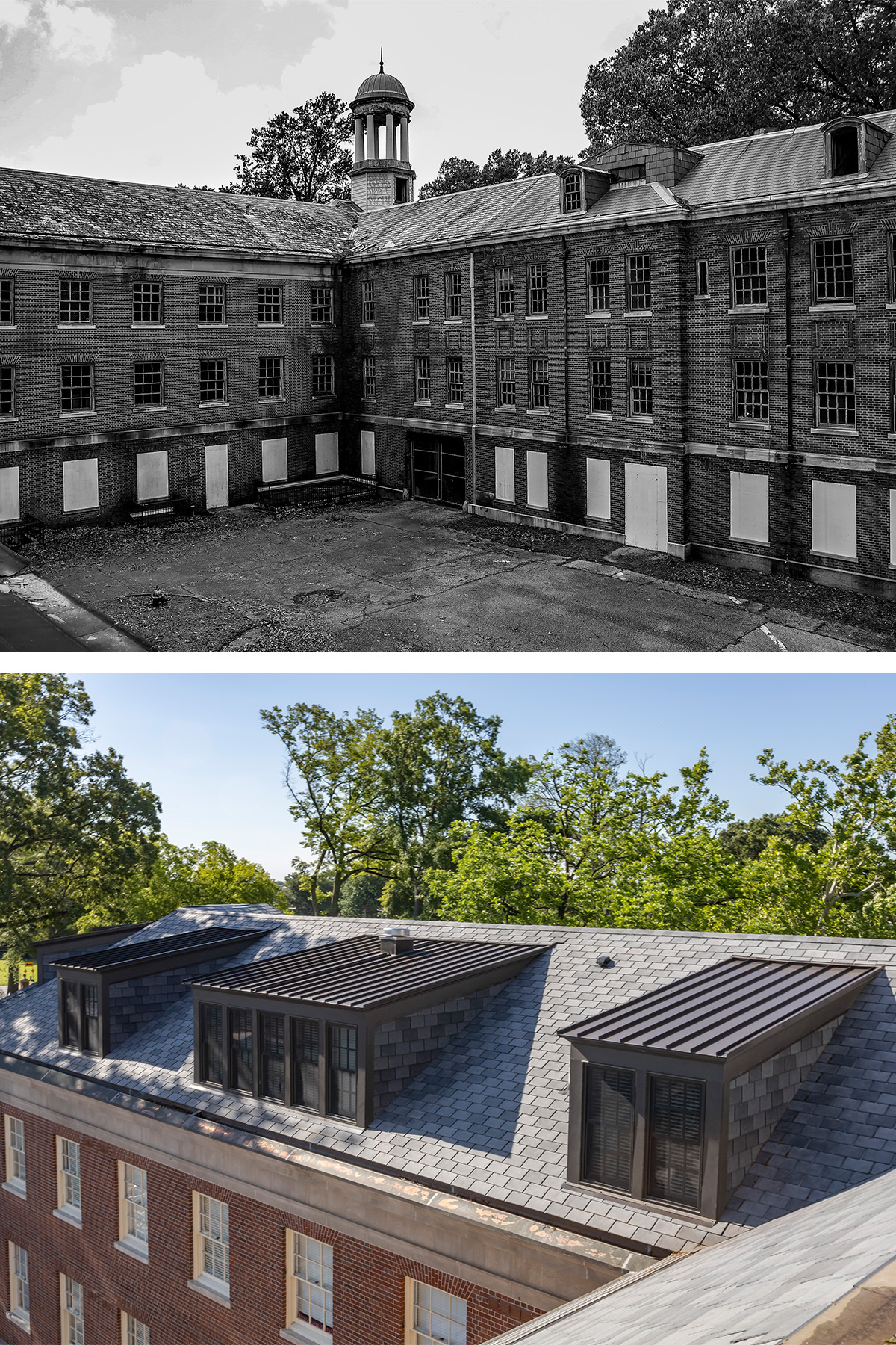 Abandoned for decades, the former Marine Hospital sat in blighted disrepair on the fringe of a proud and historic minority community. Renovation attempts had proven infeasible until the Architect was able to create additional density that would satisfy the National Park Service historic guidelines. The answer was found in delicately inserting shed dormers into the historic slate roof to create light filled occupiable residences.