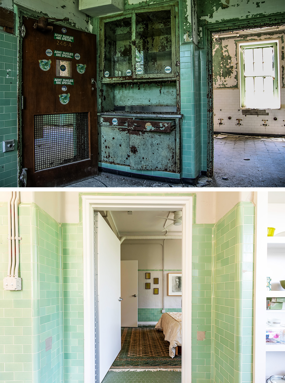 3. Original windows, walls and tile finishes were preserved in the Dental Clinic to provide historic context to the new residential unit. Photography by: Leland Kent, Abandoned Southeast