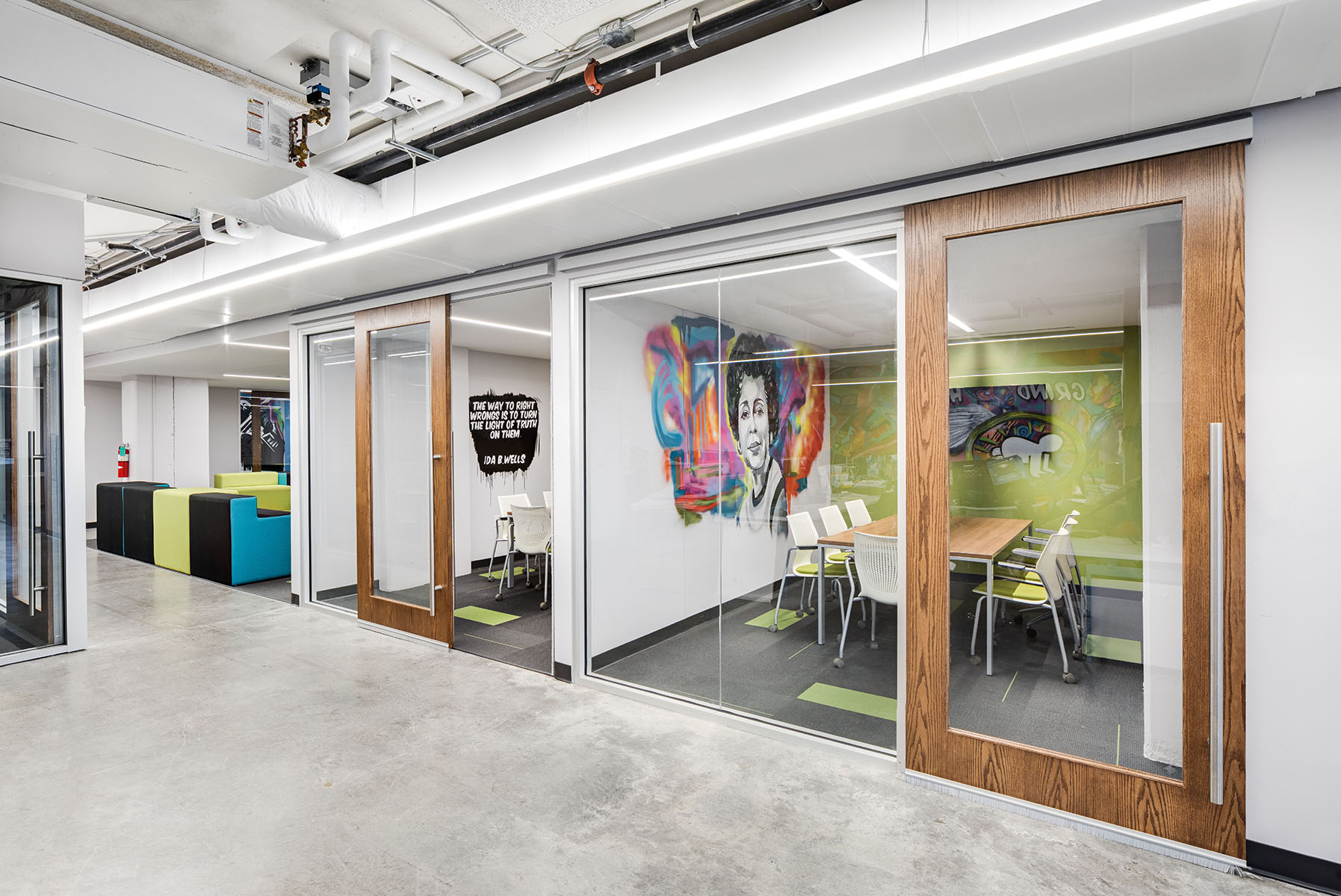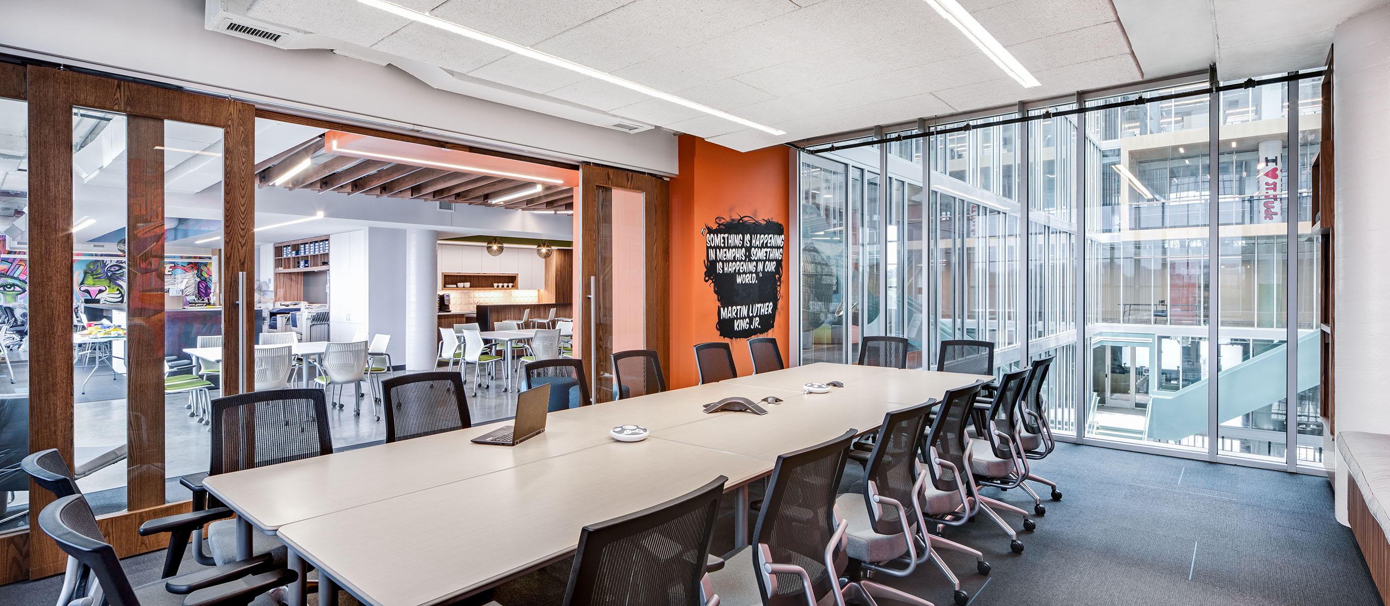 This interior renovation of a 6,100-square-foot space within a new vertical village has created a vibrant, high-efficiency, collaboration-driven workspace for educators to develop innovative teaching methods and further develop the quality of education within Memphis.
