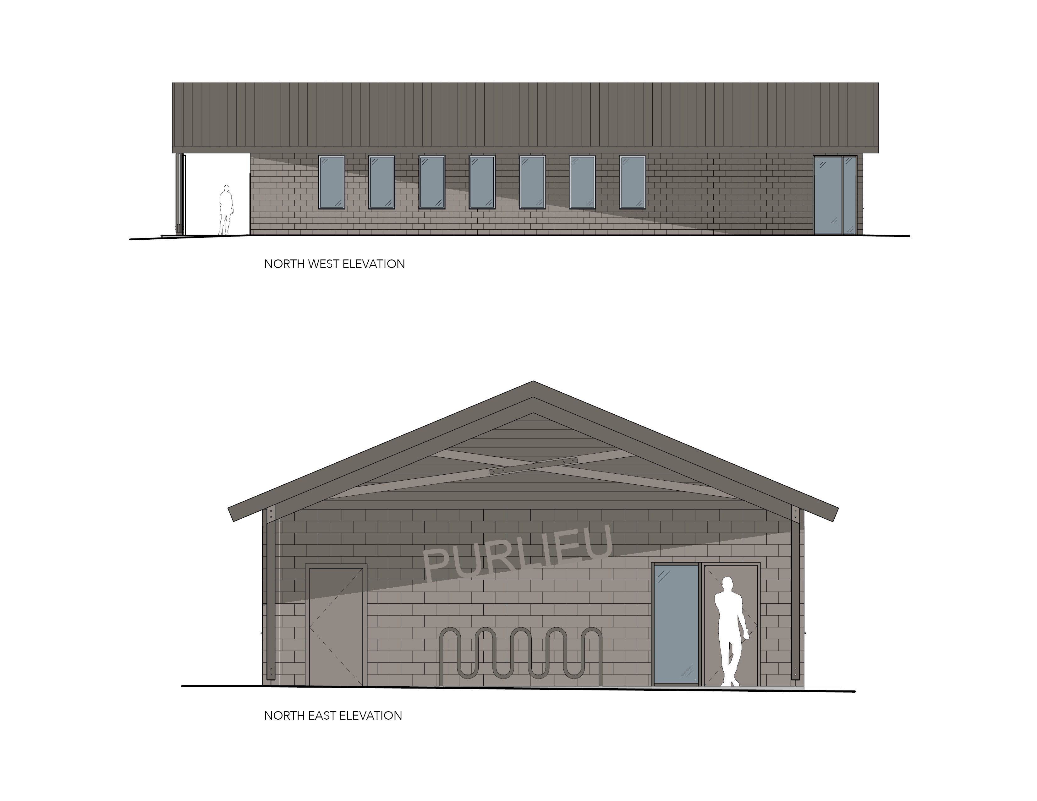 For the exterior design strategy, the team drew inspiration from the historic definition of purlieu. The term has roots in 16th century England and describes “a tract on the border of a forest and still partially subjected to forest laws.”