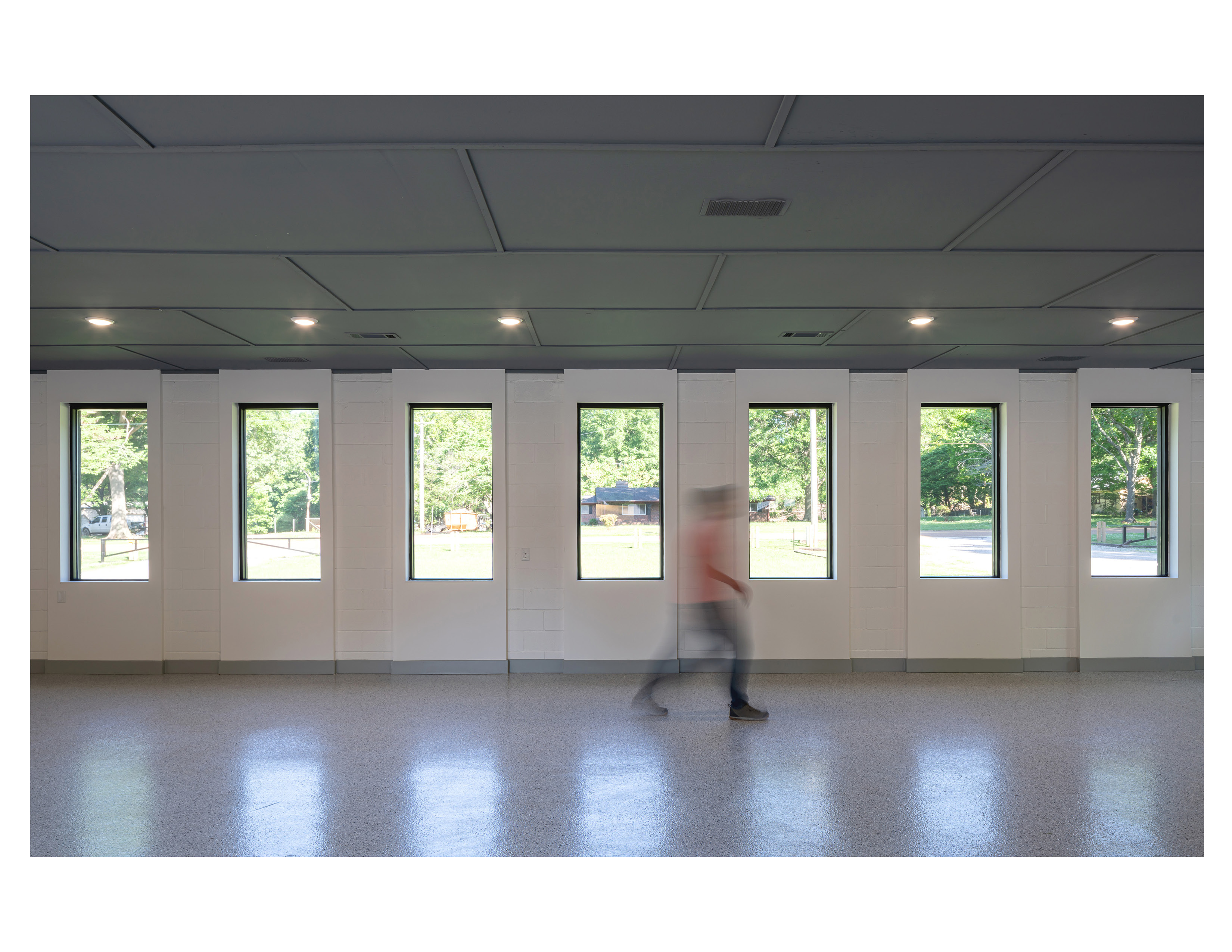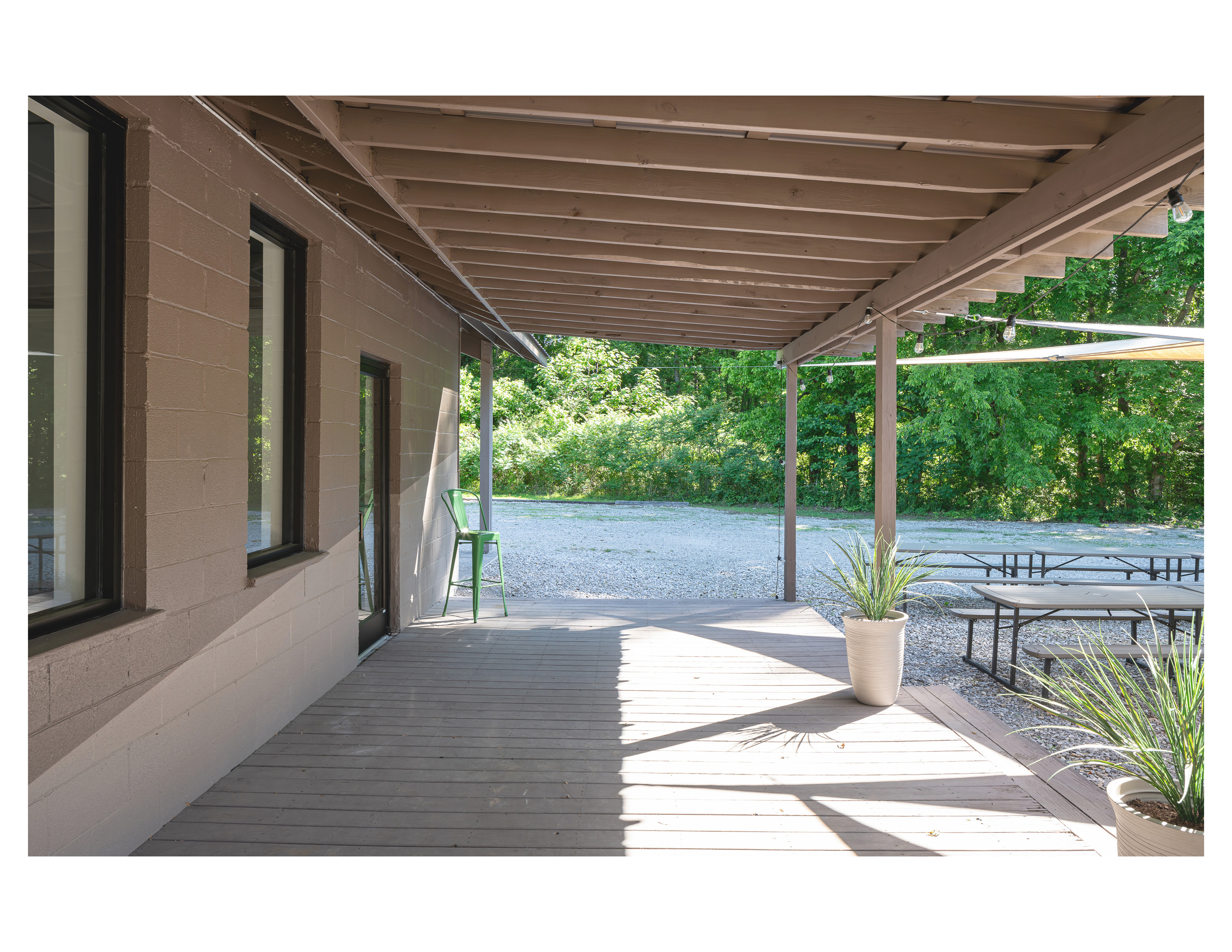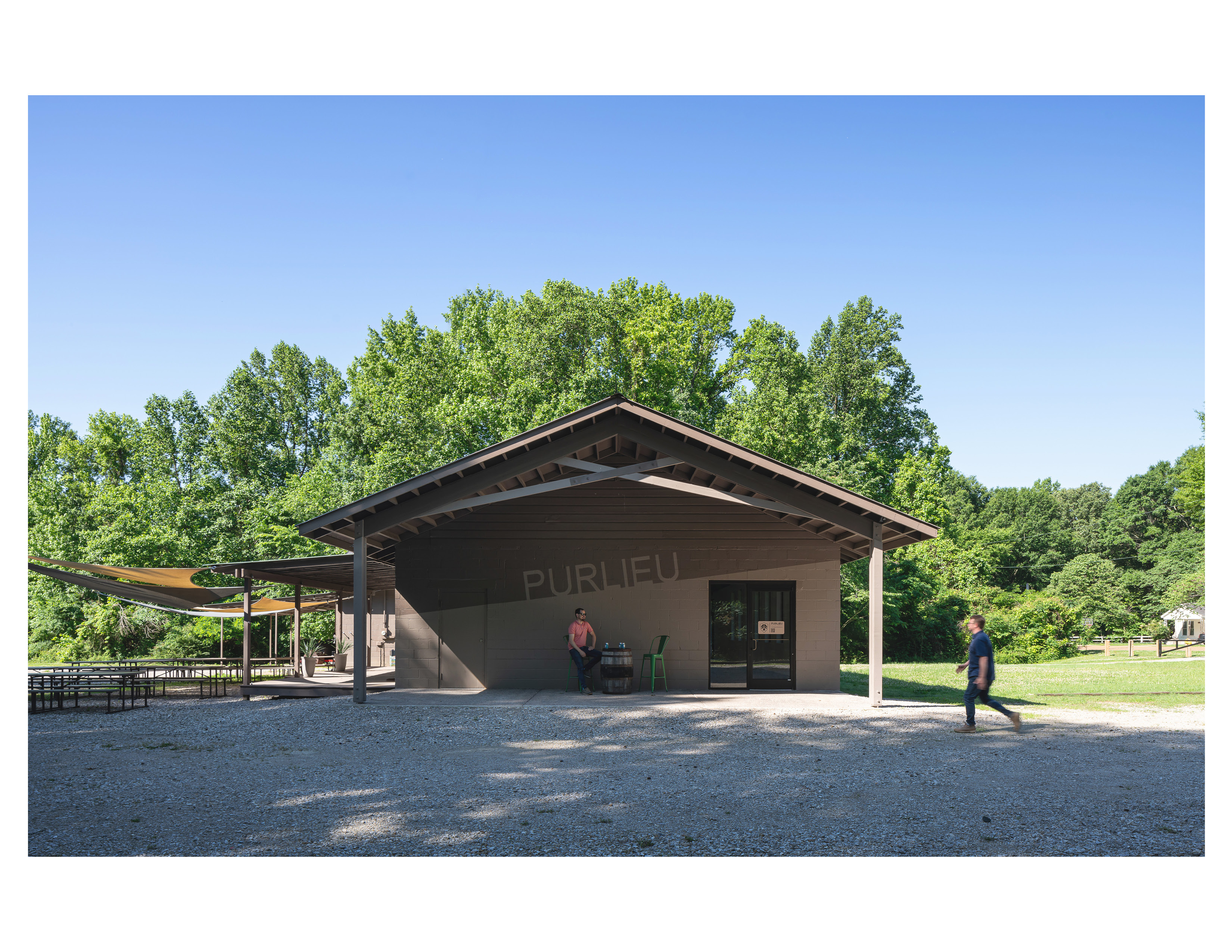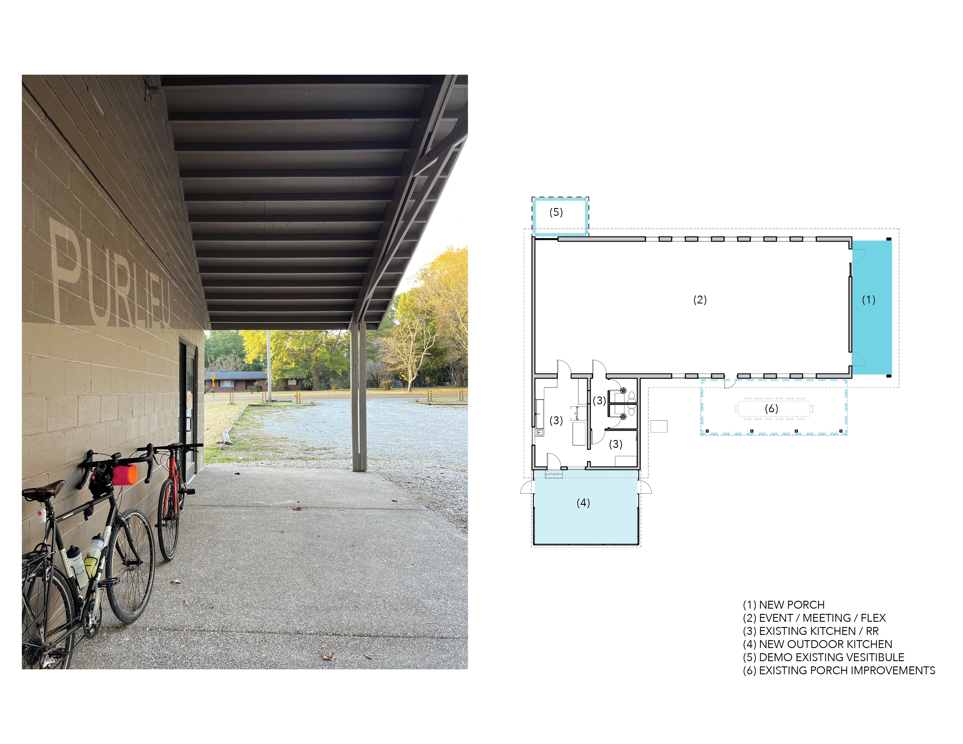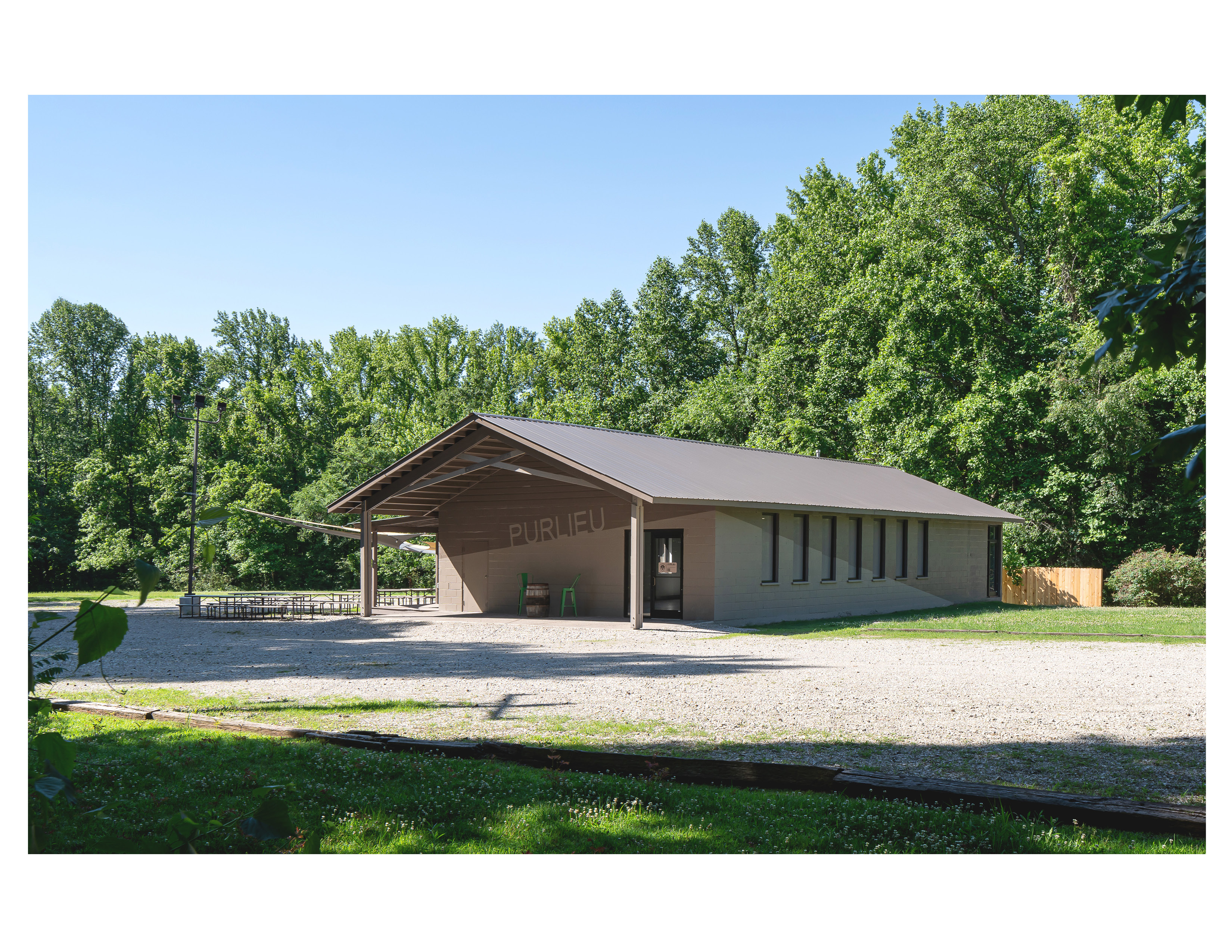 Located only 11 miles from downtown Memphis, Purlieu lies just outside the boundary of Meeman-Shelby Forest State Park. The building acts as a training ride launch point for cycling routes through the hilly surrounding area and as a locale for post-ride social events. Due to a tight budget, the improvements had to be minimal, yet impactful. An existing entry vestibule was removed. A new entry porch was developed in tandem with the creative paint scheme that integrates the client’s branding. The entry porch adds clarity to the entry and arrival sequence. New doors, windows, and roofing round out the exterior upgrades. Interior upgrades were limited to paint finishes and fixture replacements.