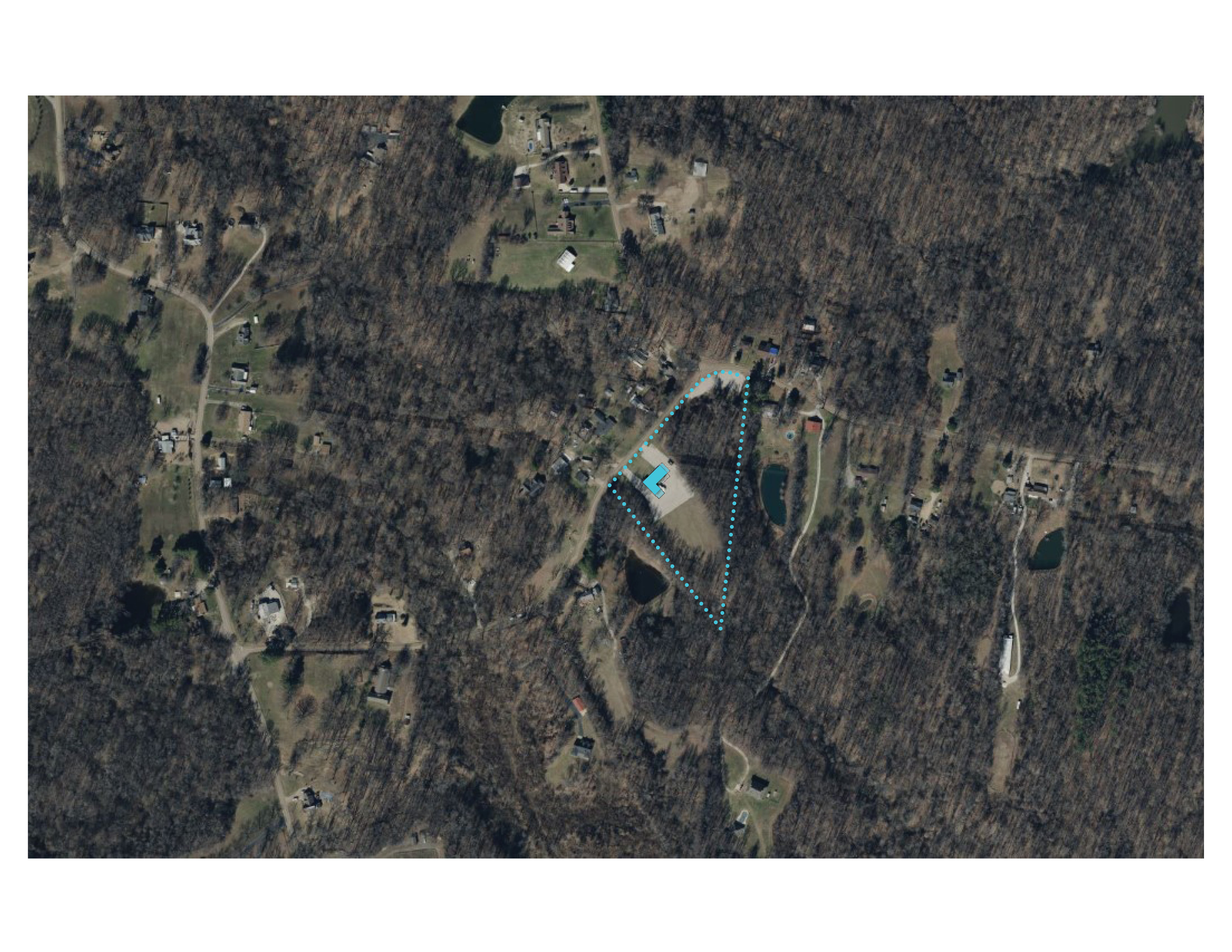 1 – Aerial vicinity plan. Building shown in blue and parking areas in grey. Photo courtesy of OOBA.
