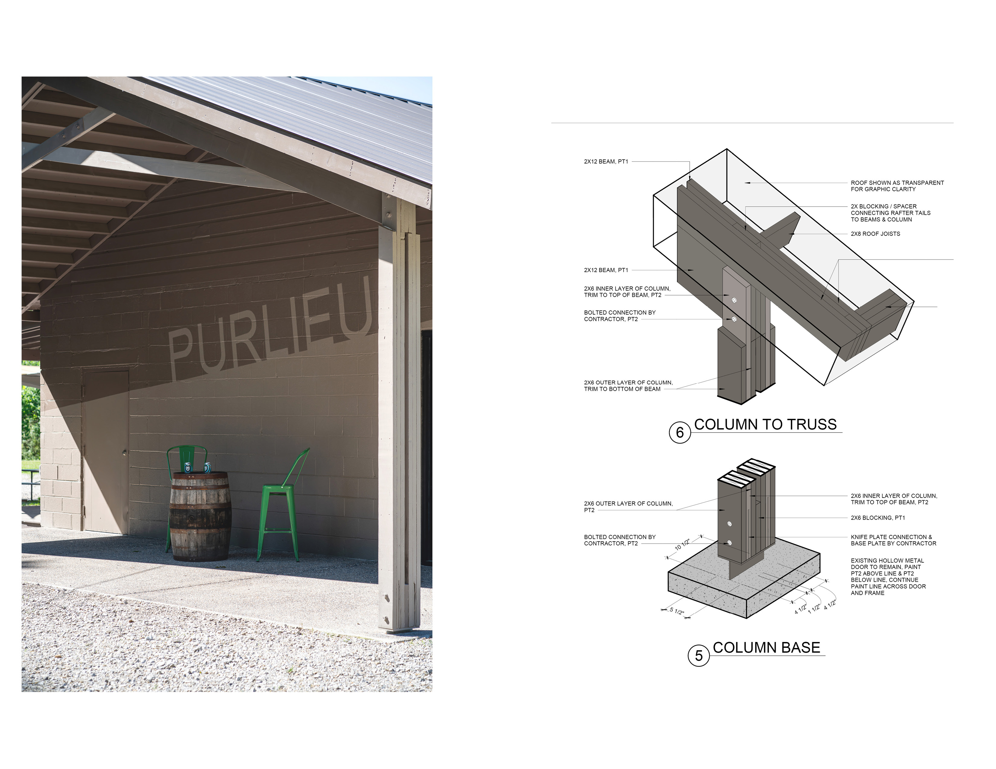8 – Detail view of new porch. Column fabrication drawings. Photo courtesy of OOBA.
