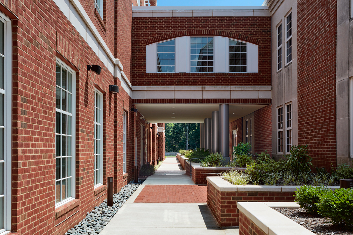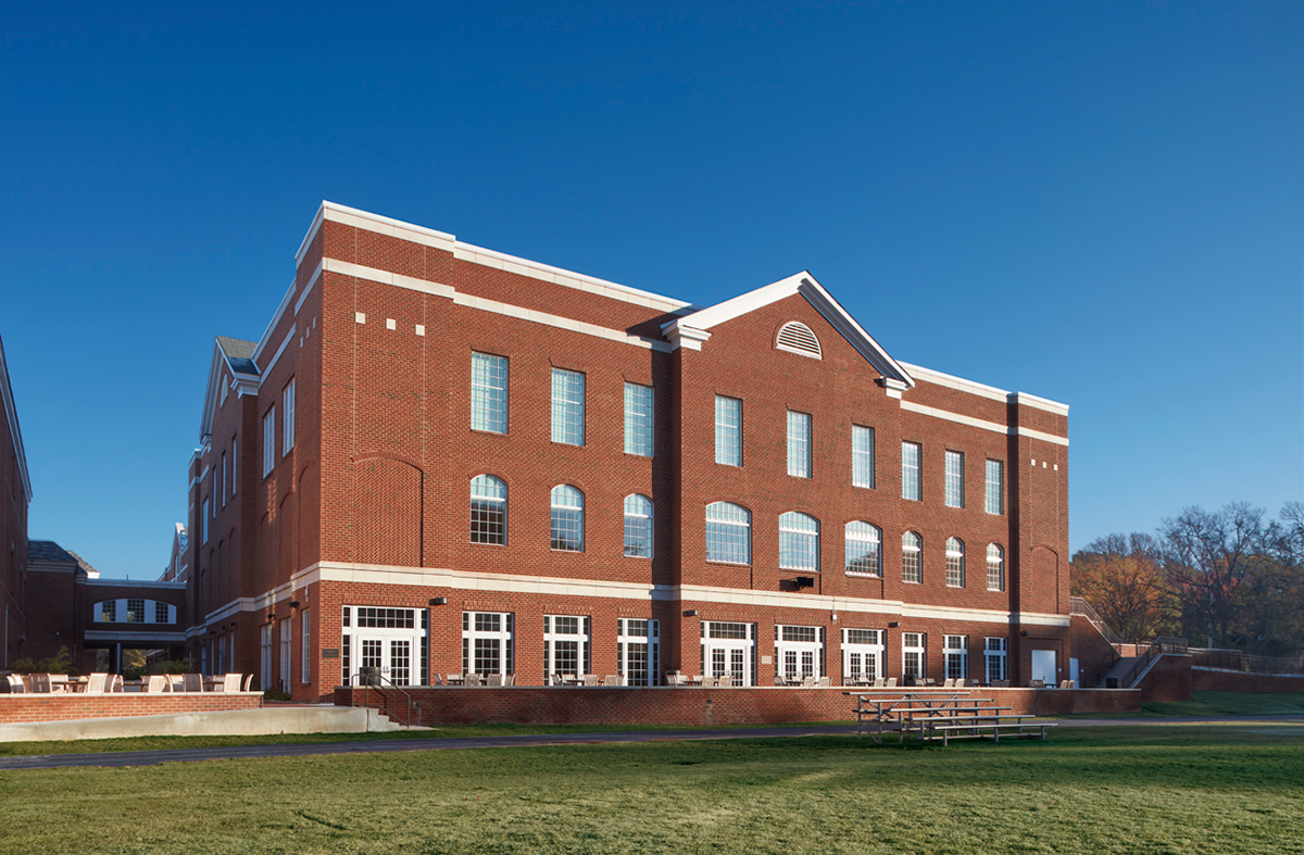 The partnership with the Church of the Holy Communion enabled both institutions to move forward with a much-needed Athletic and Wellness Center. The building is compartmentalized so that both School and Church can use adjacent areas simultaneously without interfering with each other, or that either the School and Church can use the entire upper level for large events. The new dining hall on the first floor provides students and faculty a common location to gather for meals, meetings, collaborative learning, and study. Large windows overlooking the athletic fields capture natural light. The first floor also includes classrooms, athletic offices, a training and fitness facility, and an outdoor patio for viewing events on the track and field.