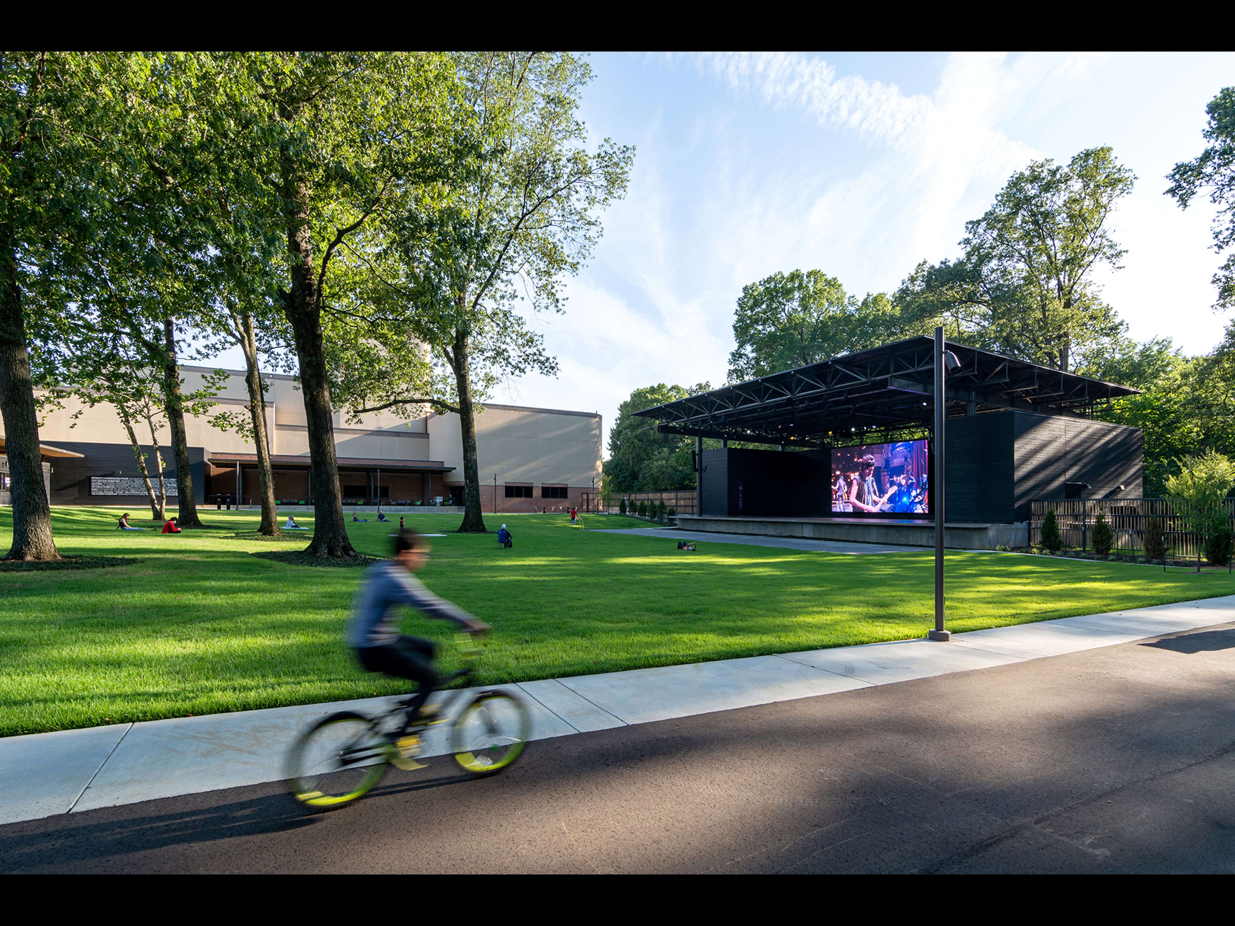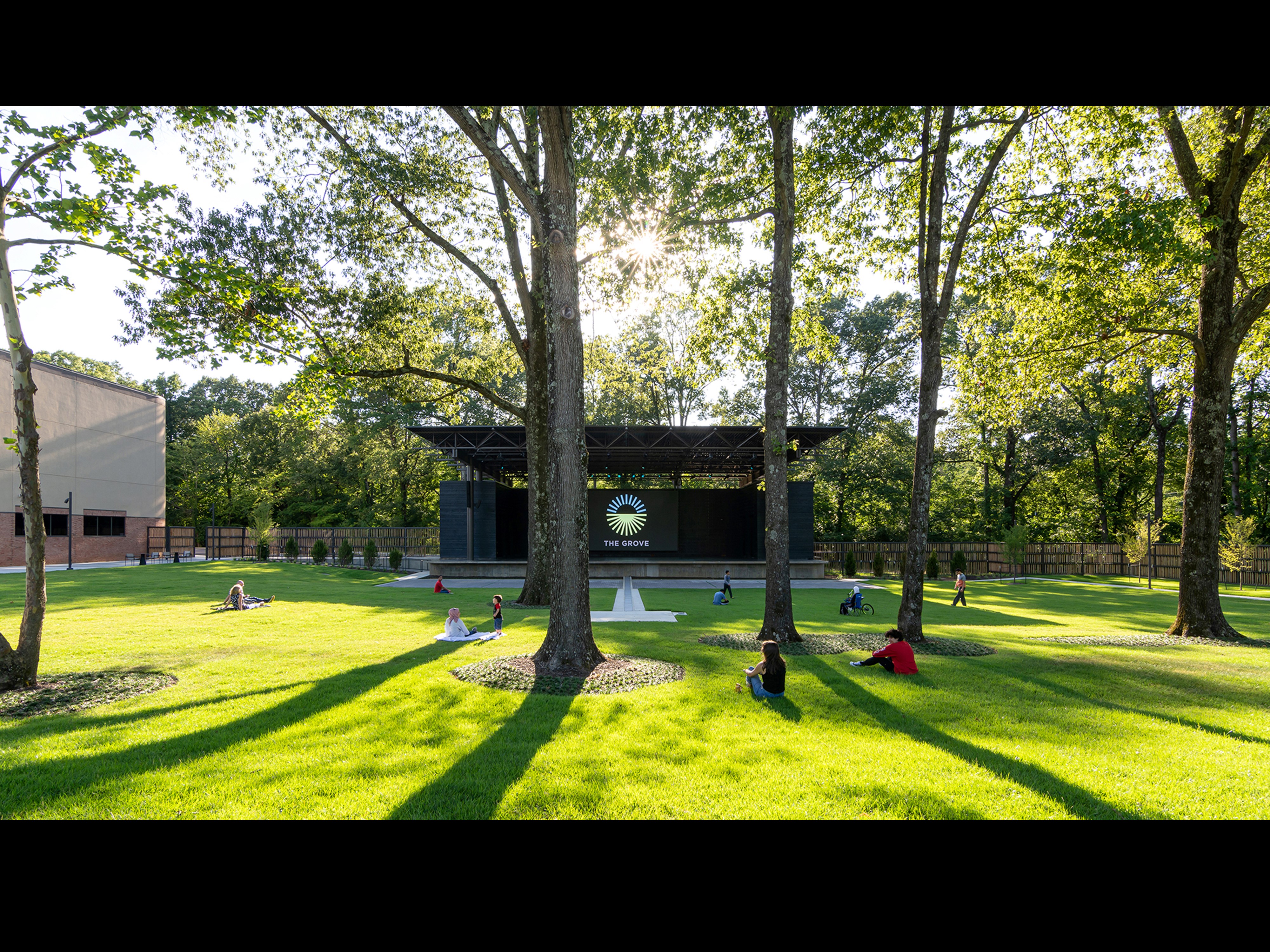 The project included a masterplan and comprehensive design for The Grove, an outdoor performance venue immediately adjacent to the existing Germantown Performing Arts Center (GPAC). Innovative architecture, hardscape, landscape, and lighting provides a multi-functional facility for programmed events and nonperformance-related uses. Patrons, performers, and supporting participants experience performances within the canopy of undisrupted old growth trees. The site anchors a lost corner, becoming the bridge point between a vehicular-laden city and a city of green by enhancing the walkability and connectivity of the community.