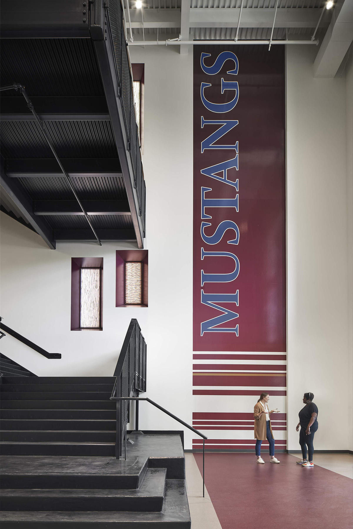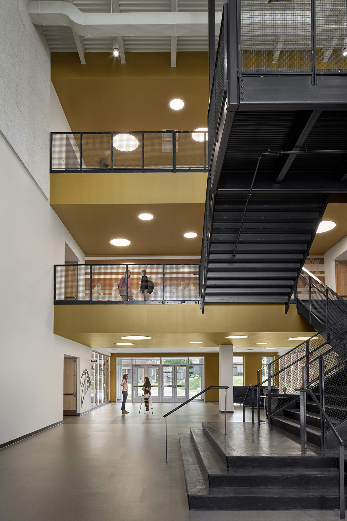 5. Vertical monumental stair that triumphantly celebrates the school culture and promotes social interaction. Photo by: Nick McGinn