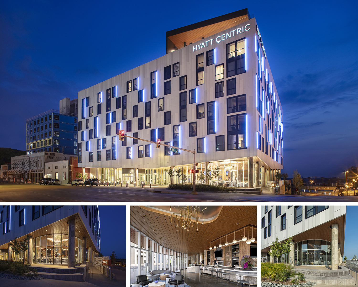 Located at the intersection of music history on Beale Street and Memphis industrial history on Front Street, and perched along the banks of the Mississippi River, the Hyatt Centric Beale Street Hotel property is influenced by the unique juxtaposition of ideas and concepts related to a site which influenced the design. The 227 room hotel and conference center is nestled within a vibrant neighborhood known for its historic music entertainment district, historic landmarks and southern hospitality.