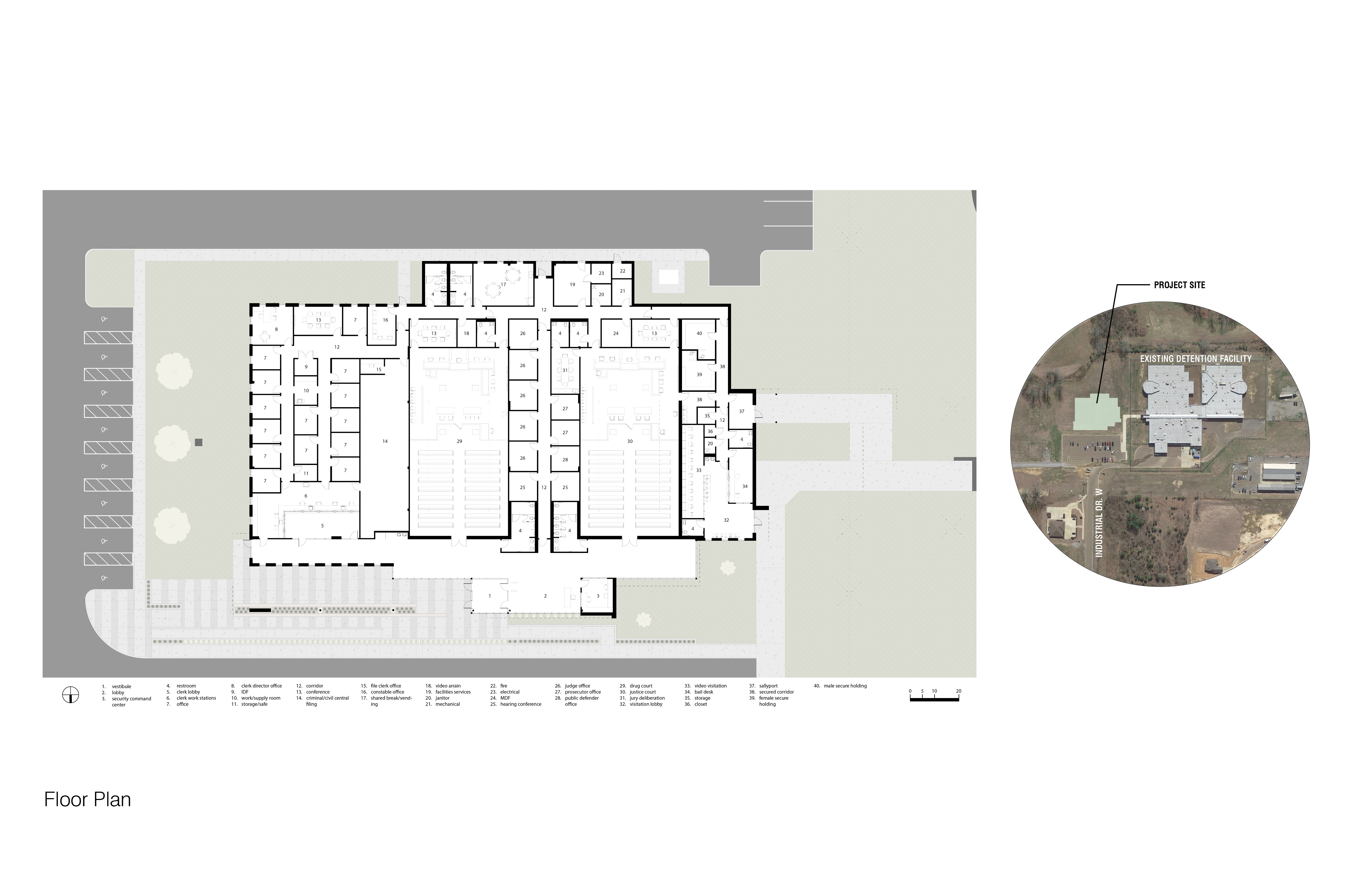 2 - The justice court sits prominently at the terminus of the approach drive and parking lot. Diagram by UrbanARCH.