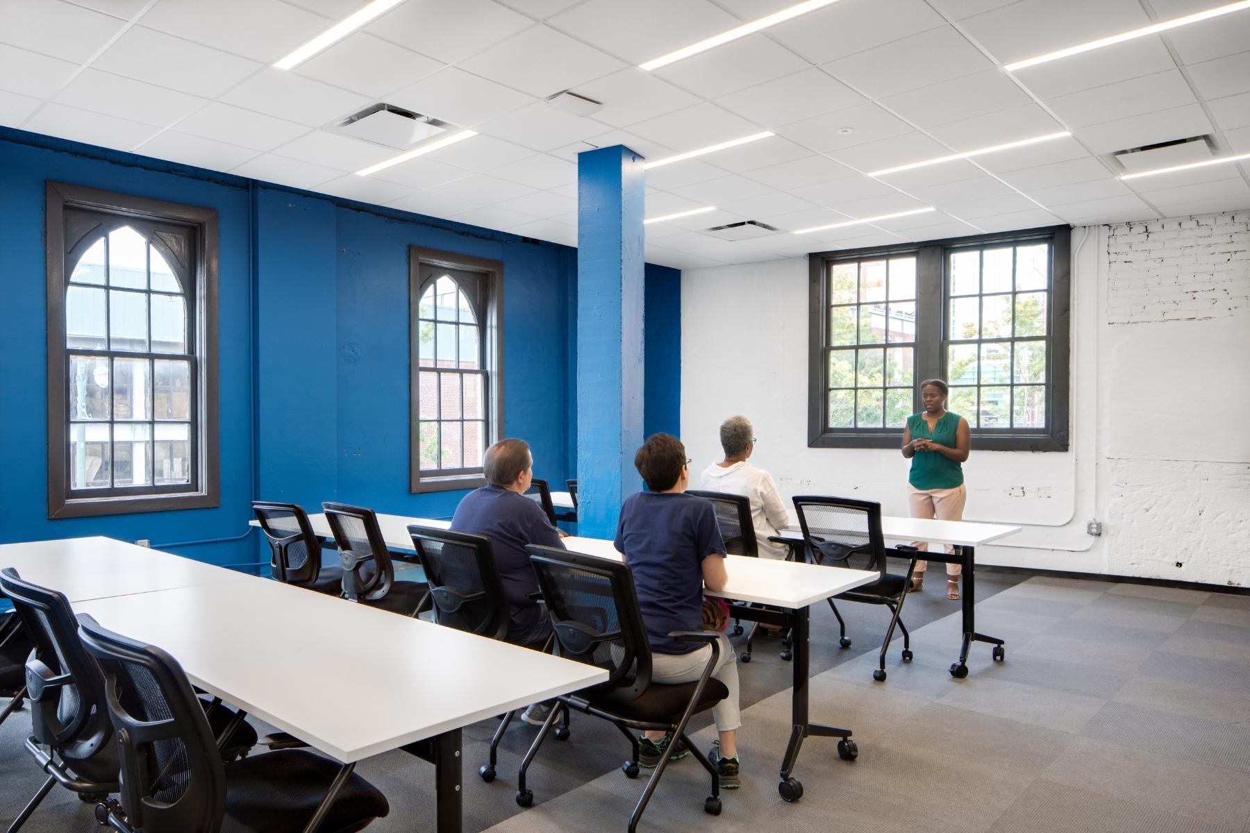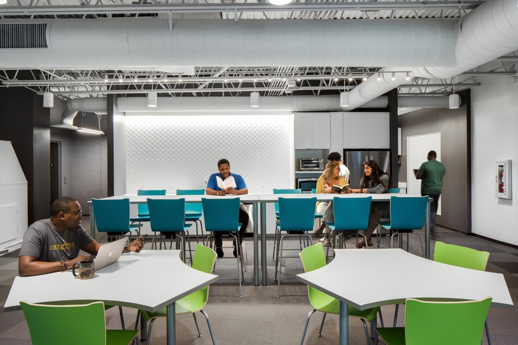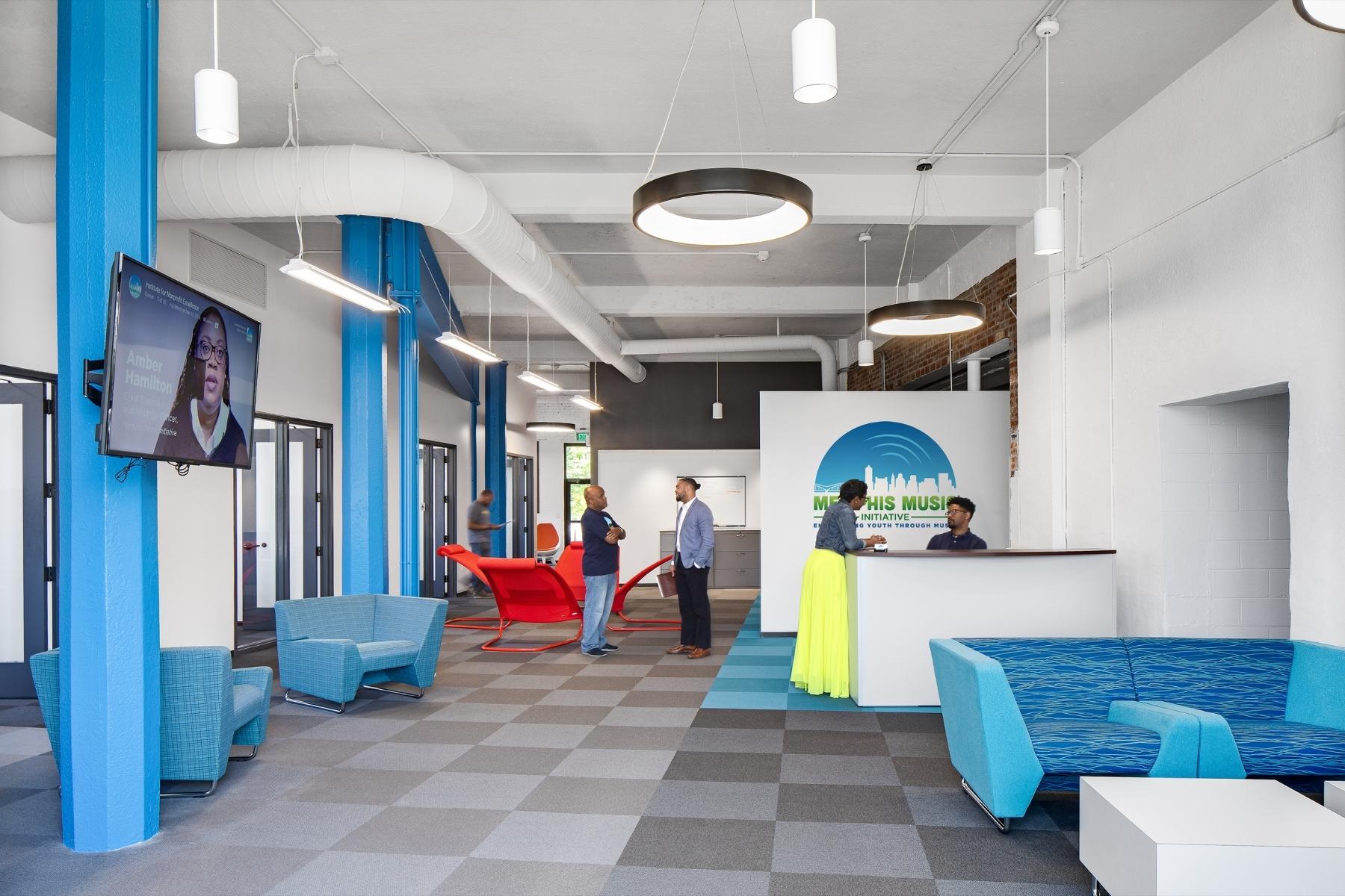 Now in its fourth phase of use, the space is home to the Memphis Music Initiative (MMI), which focuses on music education for Black and Latino youth in high-poverty communities. While collaborating with MMI, we developed a project mission to transform the interior of the building into an innovative and highly interactive office while honoring its exterior character.
