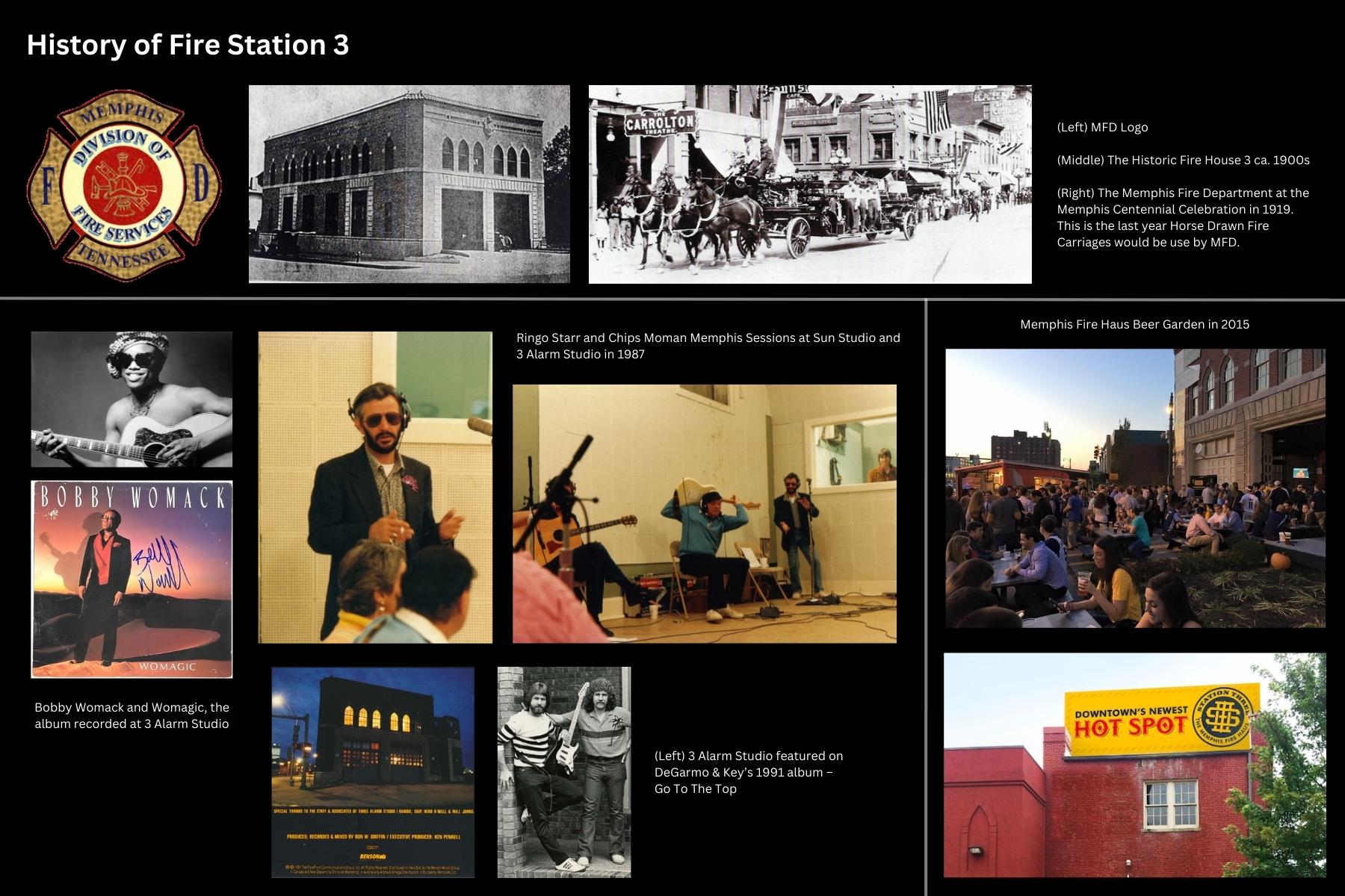 The former firehouse was leased to legendary Memphis producer Chips Moman In 1985. In preparation for use as a studio, the building was doubled in size with a new addition before a stint as 3 Alarm Studios, which served acts such as Bobby Womack and Ringo Starr. Later the building saw use in the 1990s as a nightclub. As efforts to revitalize downtown increased, the building hosted a summer-long pop-up beer garden event known as the Memphis Fire Haus in 2015.