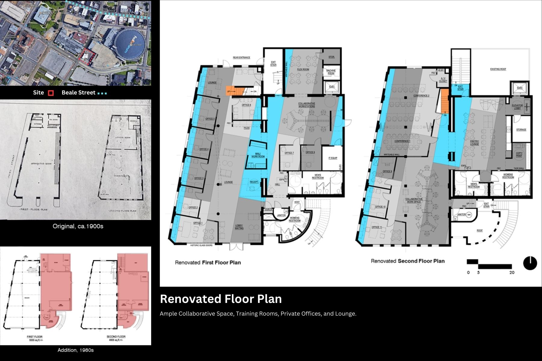This once-forgotten historic downtown firehouse is now a highly interactive office nurturing Memphis youth through music education. Now in its fourth phase of use, this building is an excellent example of preservation and adaptive reuse in the revitalizing south downtown corridor.
