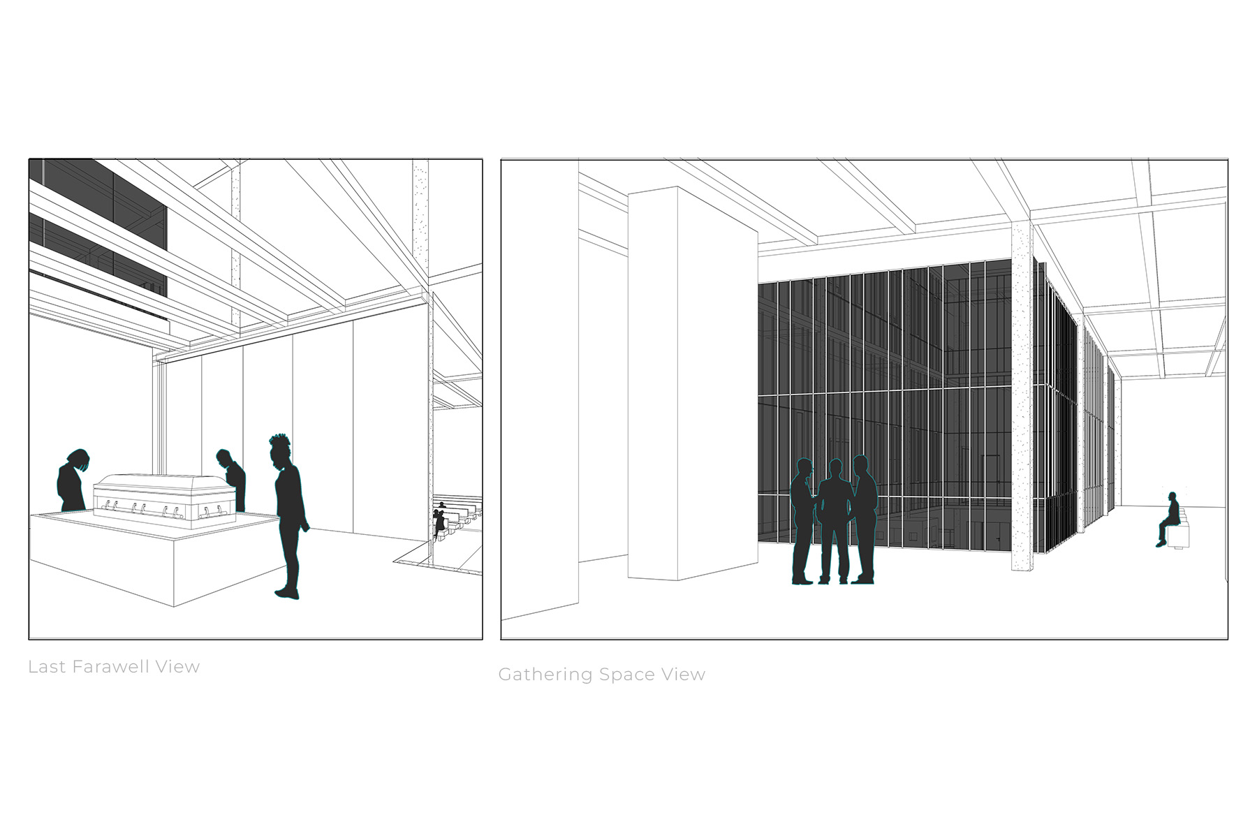 This urban crematorium project creates a meaningful path between the ceremony and cremation areas, connected by a symbolic bridge. This bridge allows mourners a reflective farewell and provides a journey for the departed.