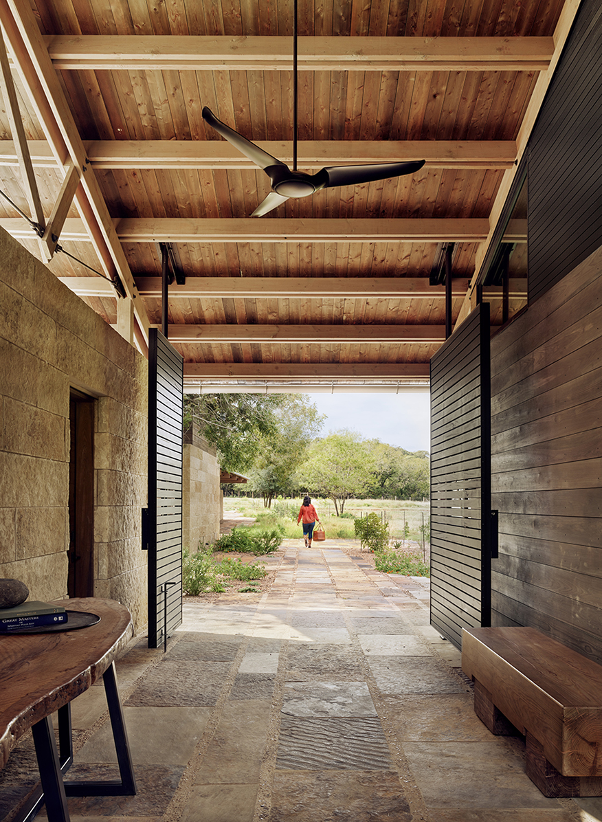 3. The material palette is intentionally limited to wood, stone and concrete with metal connectors as needed. Photo by Casey Dunn.