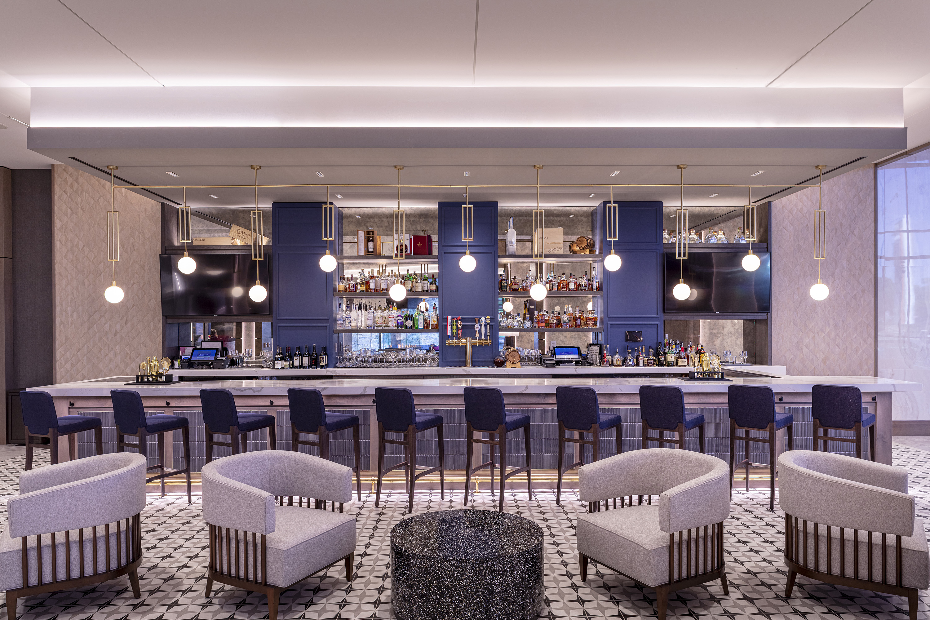 8. Hidden beyond a herringbone plaid patterned smoky glass wall, the urbane First Turn Bar is reminiscent of a gentleman’s cigar lounge. Photo by Dero Sanford.