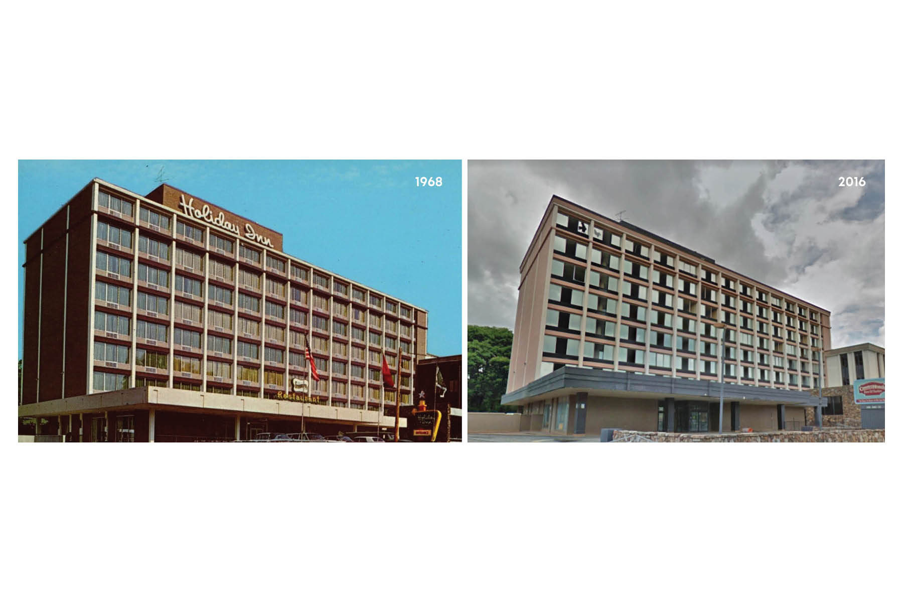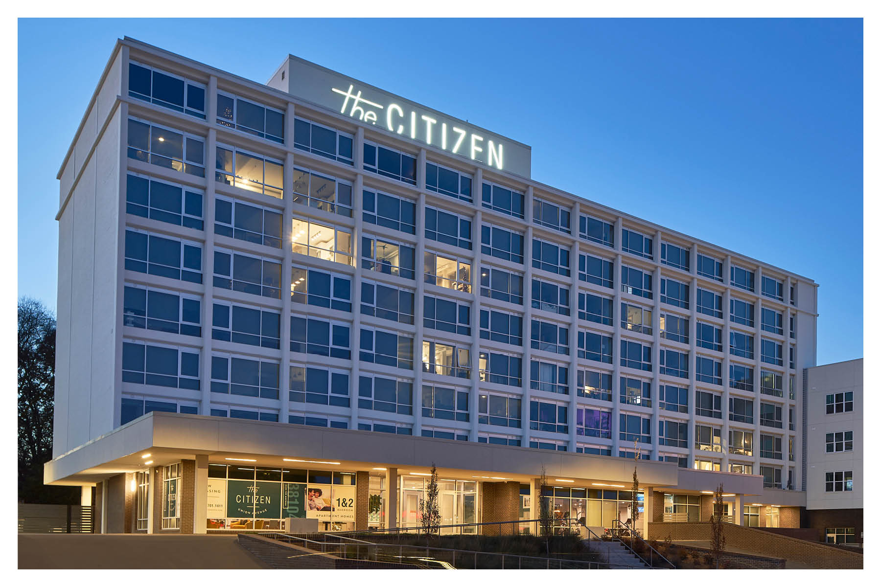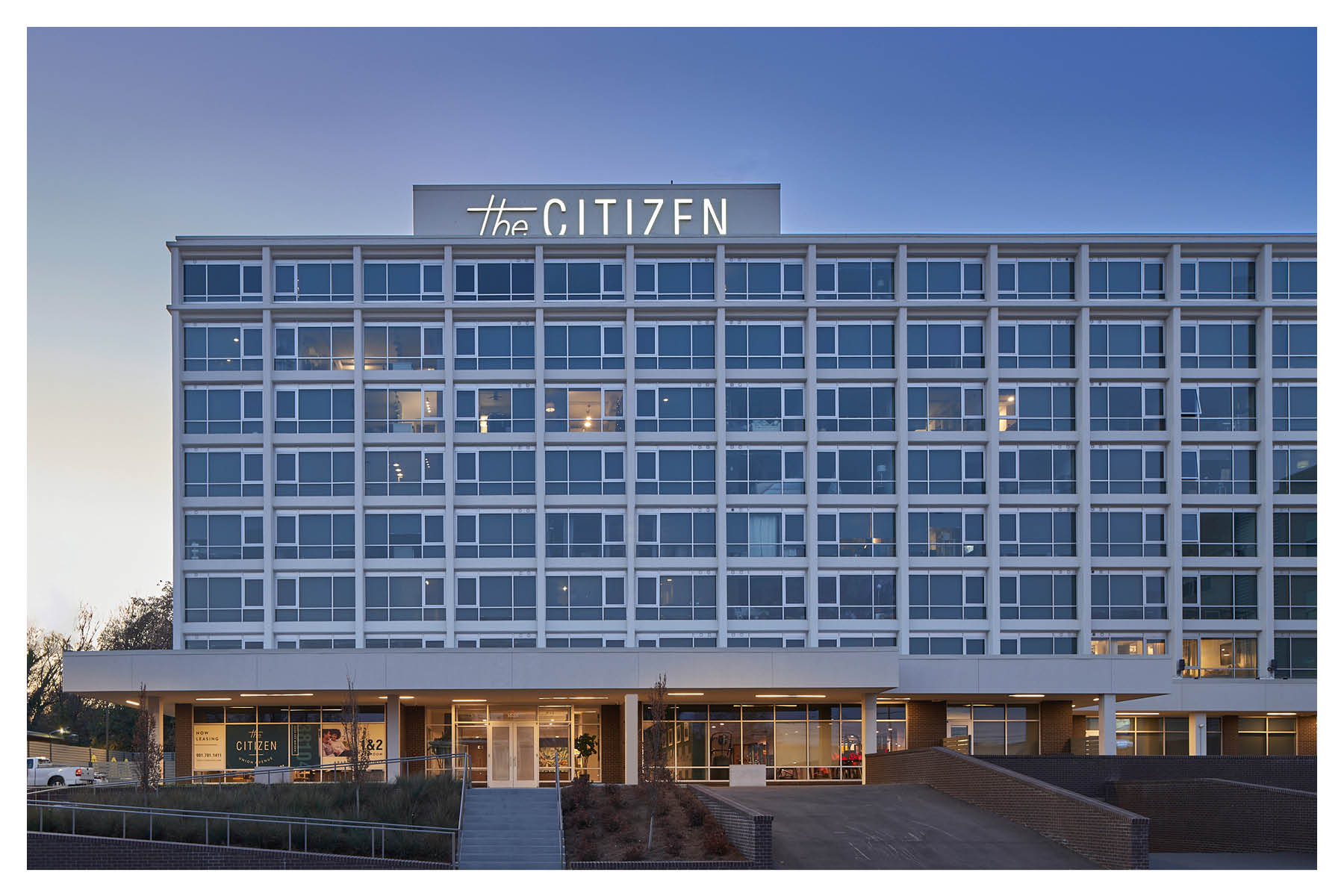 Though it is a complex exercise in adaptive reuse and urban design, the project presents itself in a clear and ordered manner, reflective of the existing building’s impressive structure. Originally constructed as a part of an internationally recognizable hotel chain with local roots, the structure is as efficient as it is iconic. Due to damage from sitting vacant for nearly a decade and low floor-to-floor heights, initial plans called for the existing building to be razed. Seeing merit in the historic structure, the design team developed plans for efficient and organized units, successfully advocating for its reuse.