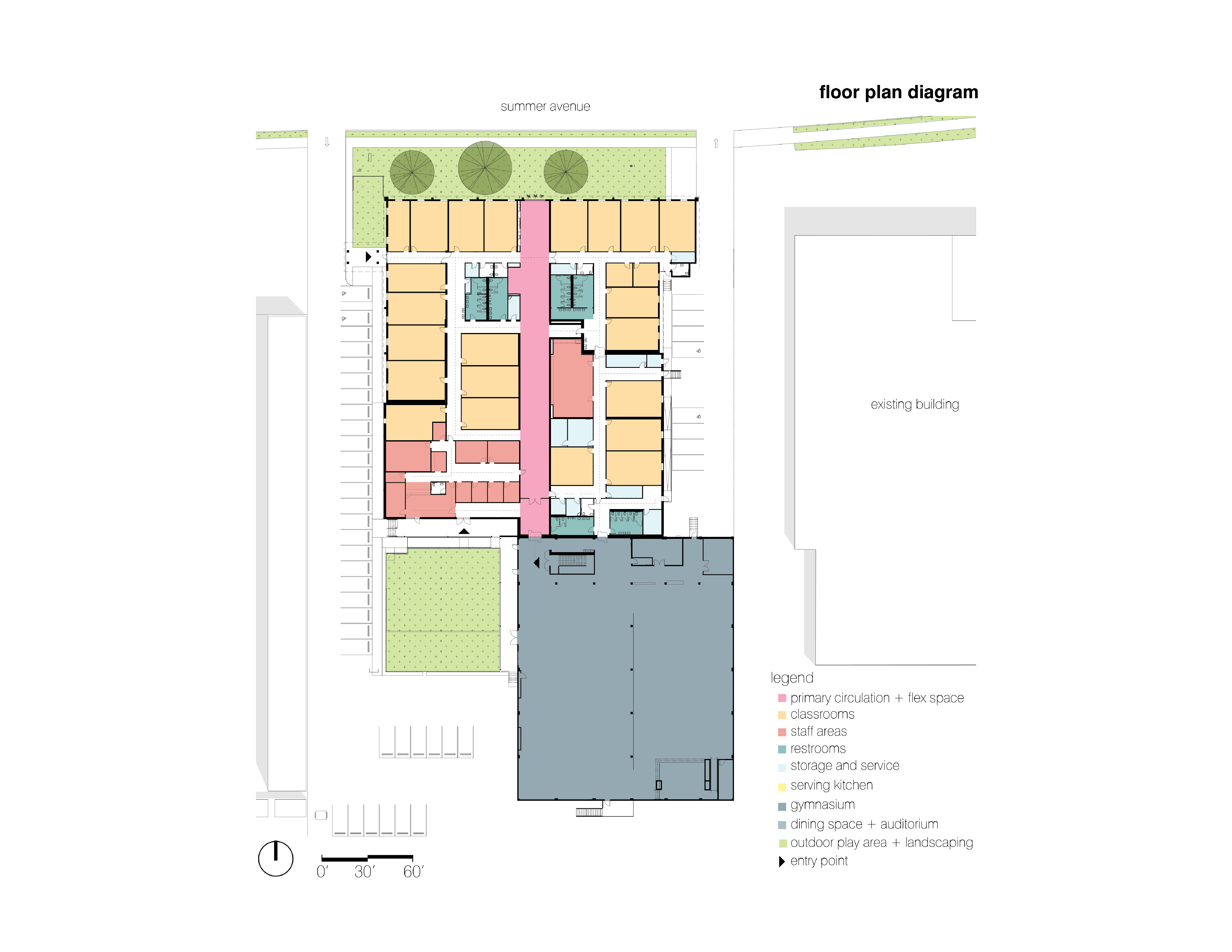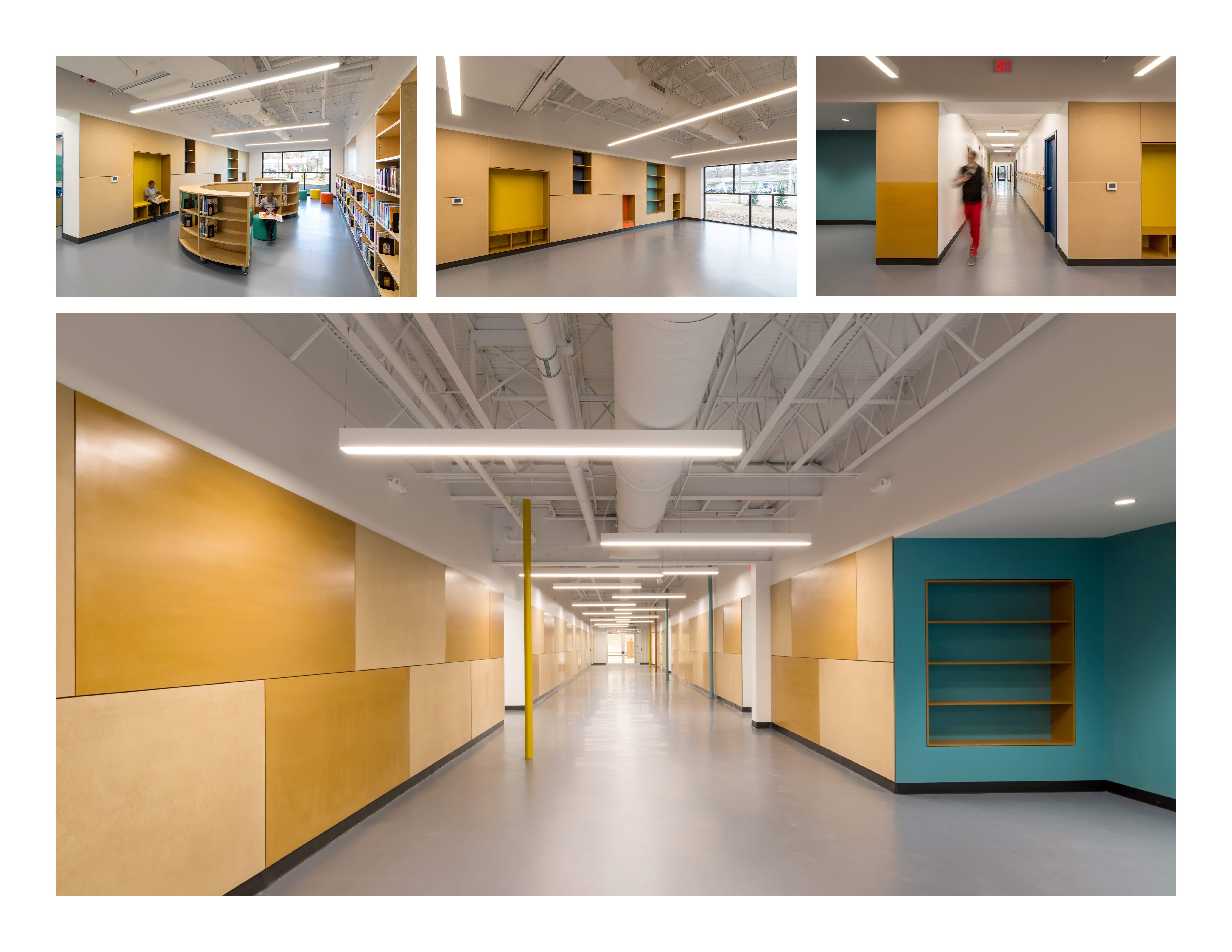 The project transforms an inner city charter school through deliberate, minimal design moves and creative use of inexpensive materials to meet the strict budget requirements for the project while also creating a significant impact.