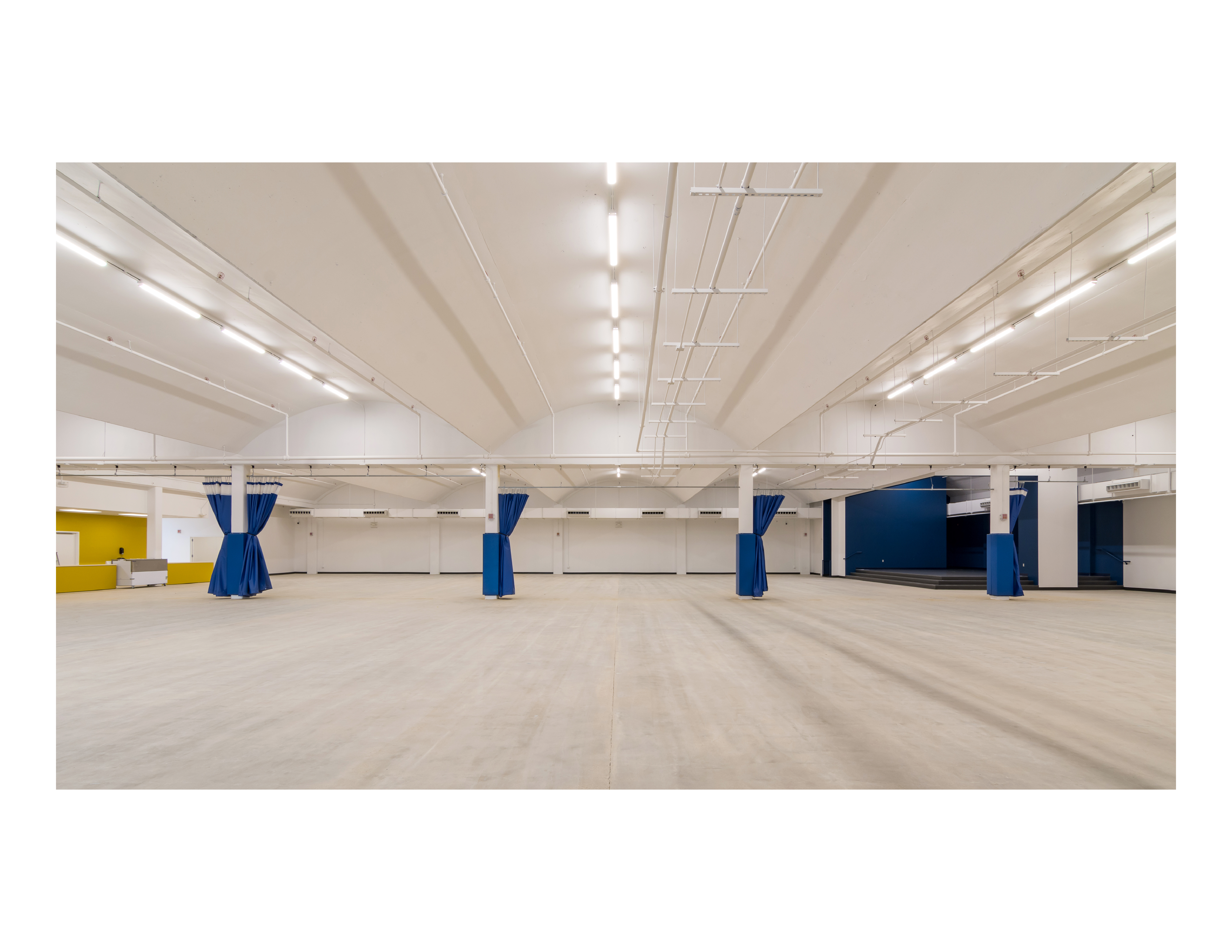 The northern half was almost entirely gutted to maximize the use of the space for classrooms and offices. Most were concentrated along the perimeter to allow each room to have access to natural light. The few rooms located in the center of the building were illuminated with daylight as well, by punching skylights through the roof. The classrooms are connected by color-coded corridors, which allow for easy access and wayfinding from any part of the building.