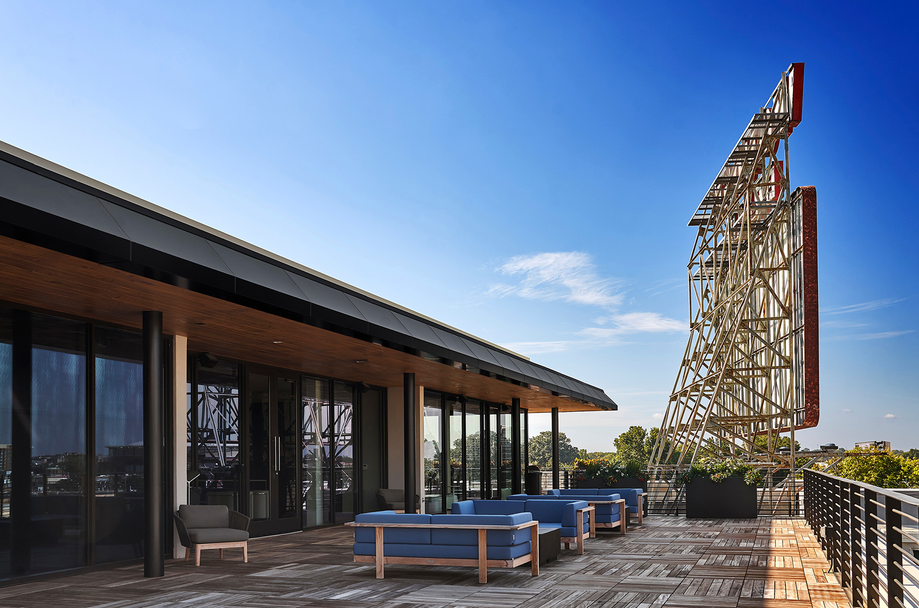 Vacant since 2013, the 63,000-square-foot existing structure now provides Class A office space for more than 225 employees. The three-story, day-lit lobby with a central staircase creates a moment for the interior to be revealed, part of the client’s desire for transparency and connection with the city. The office environment encourages collaboration and is supported by various sized conference rooms and open informal meeting spaces. Central coffee and copy areas also connect open office space on each floor. The modern roof-top addition of 7,100 square feet provides space for a breakroom, pre-function space, and rooftop deck. Available to all employees, it showcases scenic views of downtown Memphis.