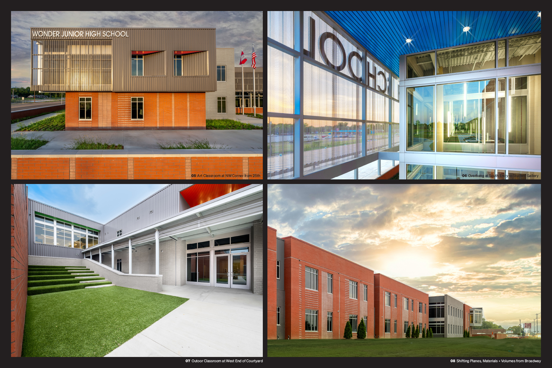 Located in West Memphis, Arkansas, the New Wonder Junior High School transforms a blighted 13-acre urban site on Broadway Avenue into a dynamic learning environment that blurs the line between indoors and nature.