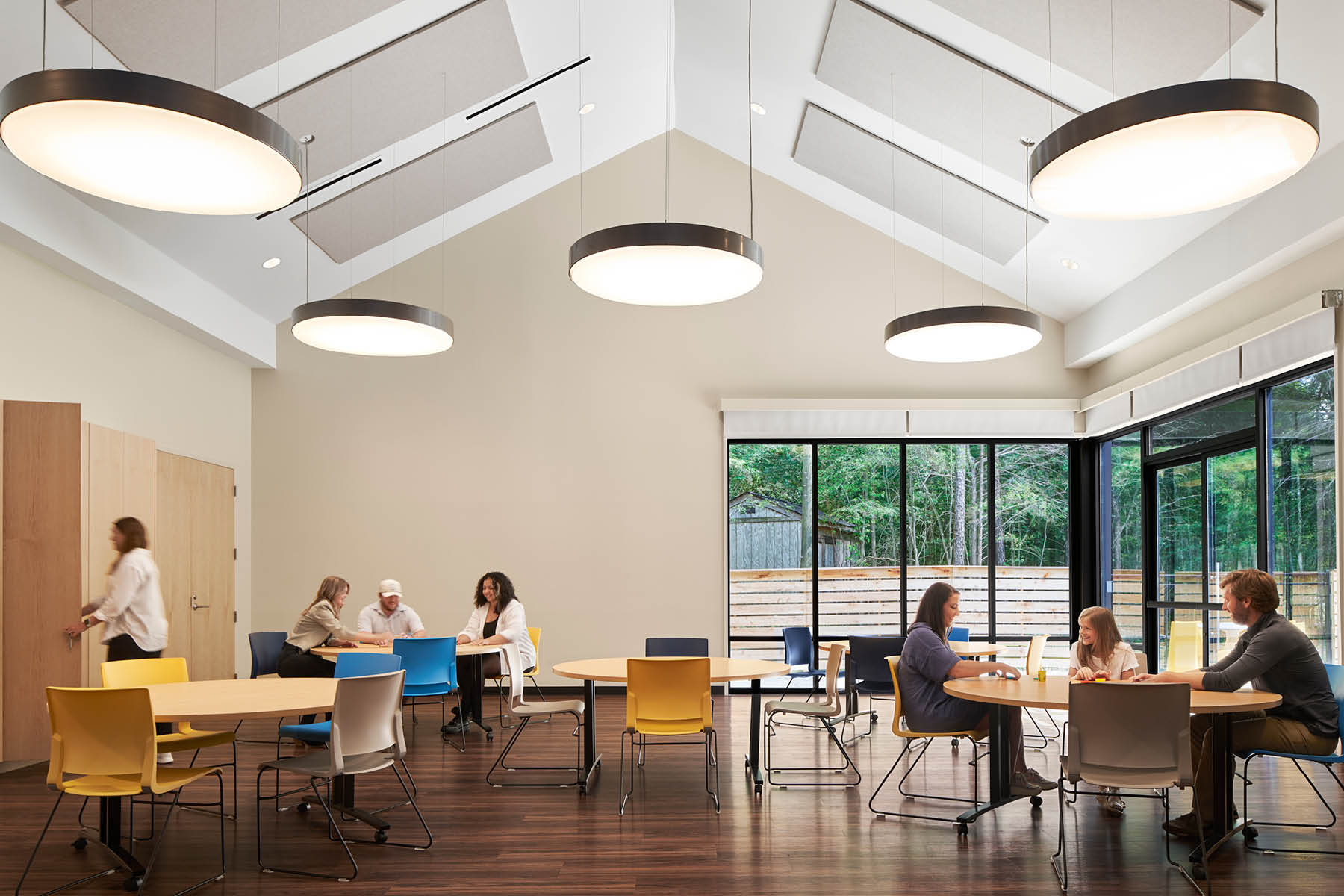 The Kemmons Wilson Family Center for Good Grief initiated a 4,600-square-foot $2.1 million expansion to their Collierville campus to help address the growing demand for counseling services, and provide a new space for summer camps and community activities. The project team answered the multi-use programmatic criteria with a simple building form and a clear parti that brings daylight into every space.