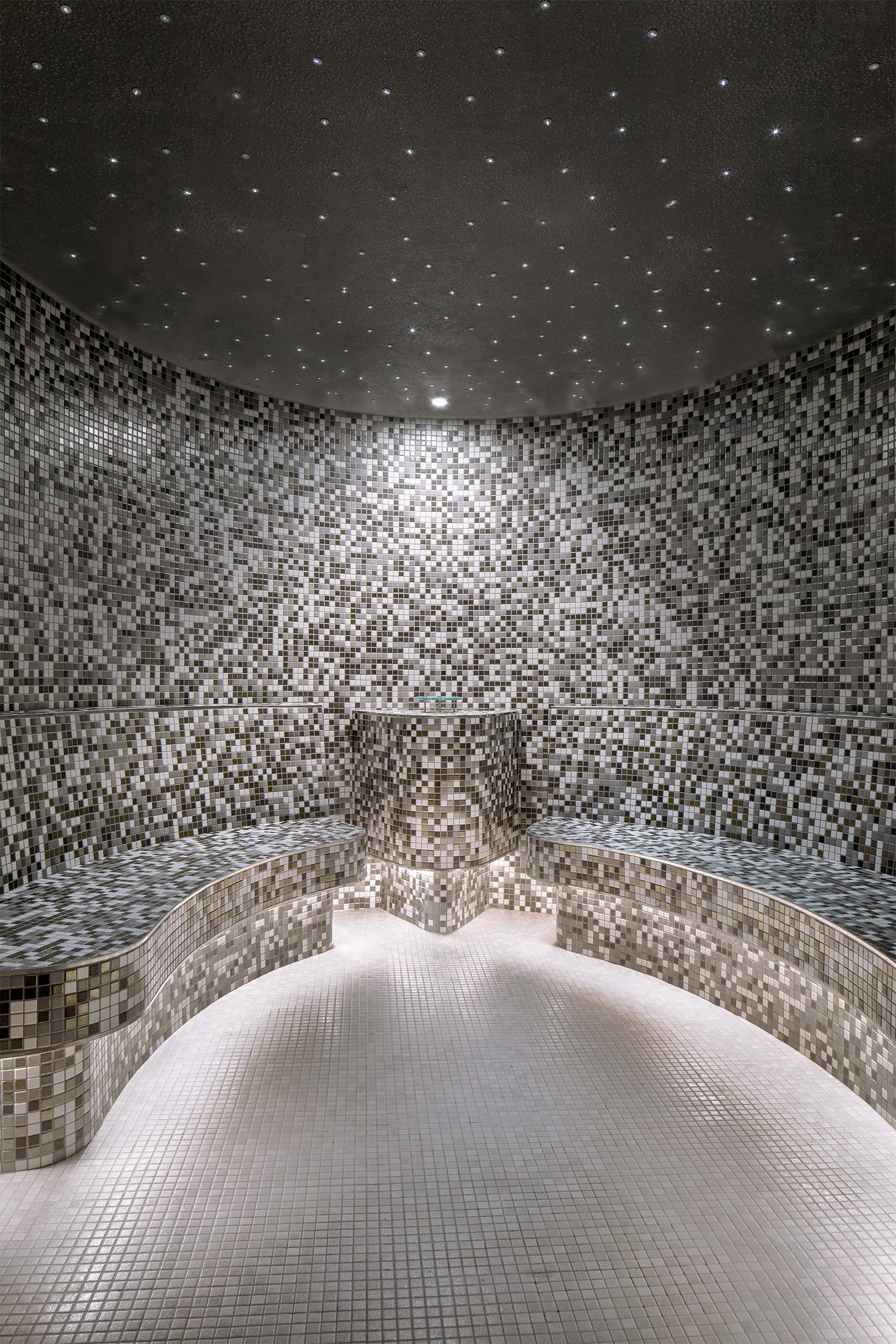 8. A whimsical starry sky light show enhances the senses in the women’s steam room. Photo by Peter Malinowski