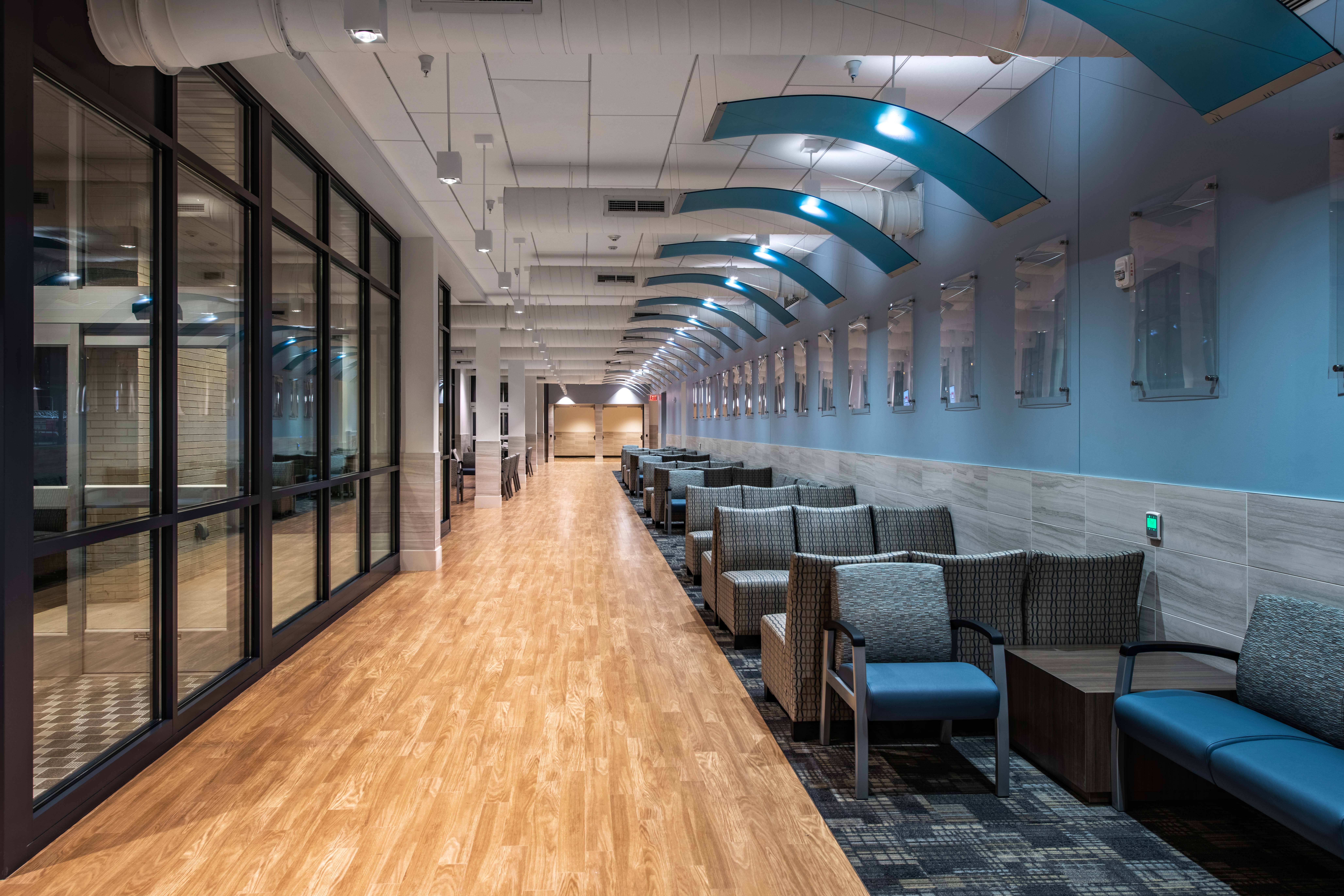 5. Central Lobby Hall - From here, guests can seat themselves and begin the healing process. If they so choose, the guests also have the ability to walk and roam in the space while being monitored in a safe environment. This space provides the guests the ability to relax, sit with staff and counselors and begin to learn how to overcome the individual challenges in their lives. To help inspire them in their journey, art created by the patrons of the Mission will hang in the acrylic stand offs on the wall. Photo by Steve Austell.