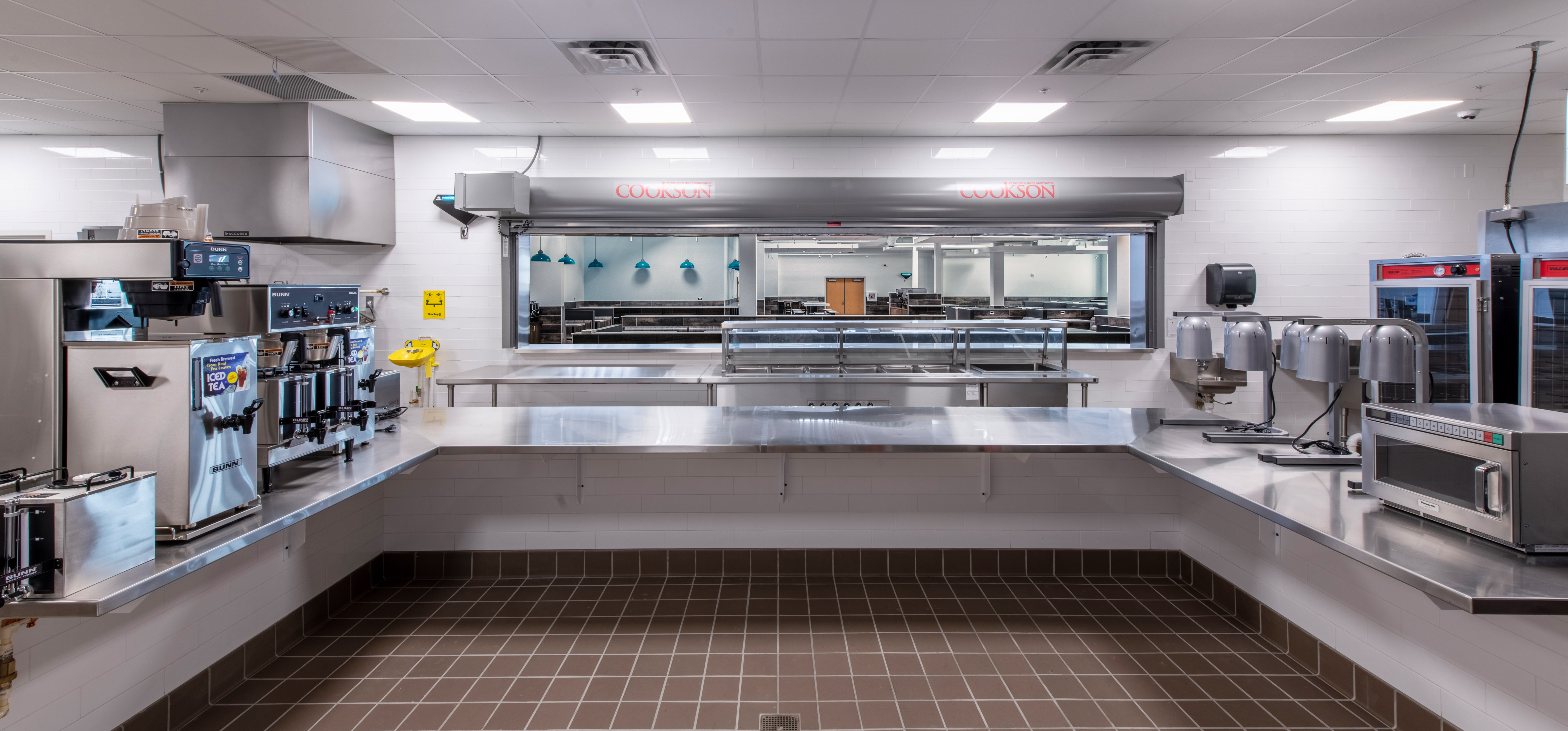 4. The Café’ Serving Line / Dining Hall at Memphis Union Mission. This image showcases the conversion of the former warehouse on the site to a new café & full service kitchen. This space creates an environment of dignity and helps to encourage group conversation and community. This space is filled with natural light and is now fully ADA compliant. Photo by Steve Austell.