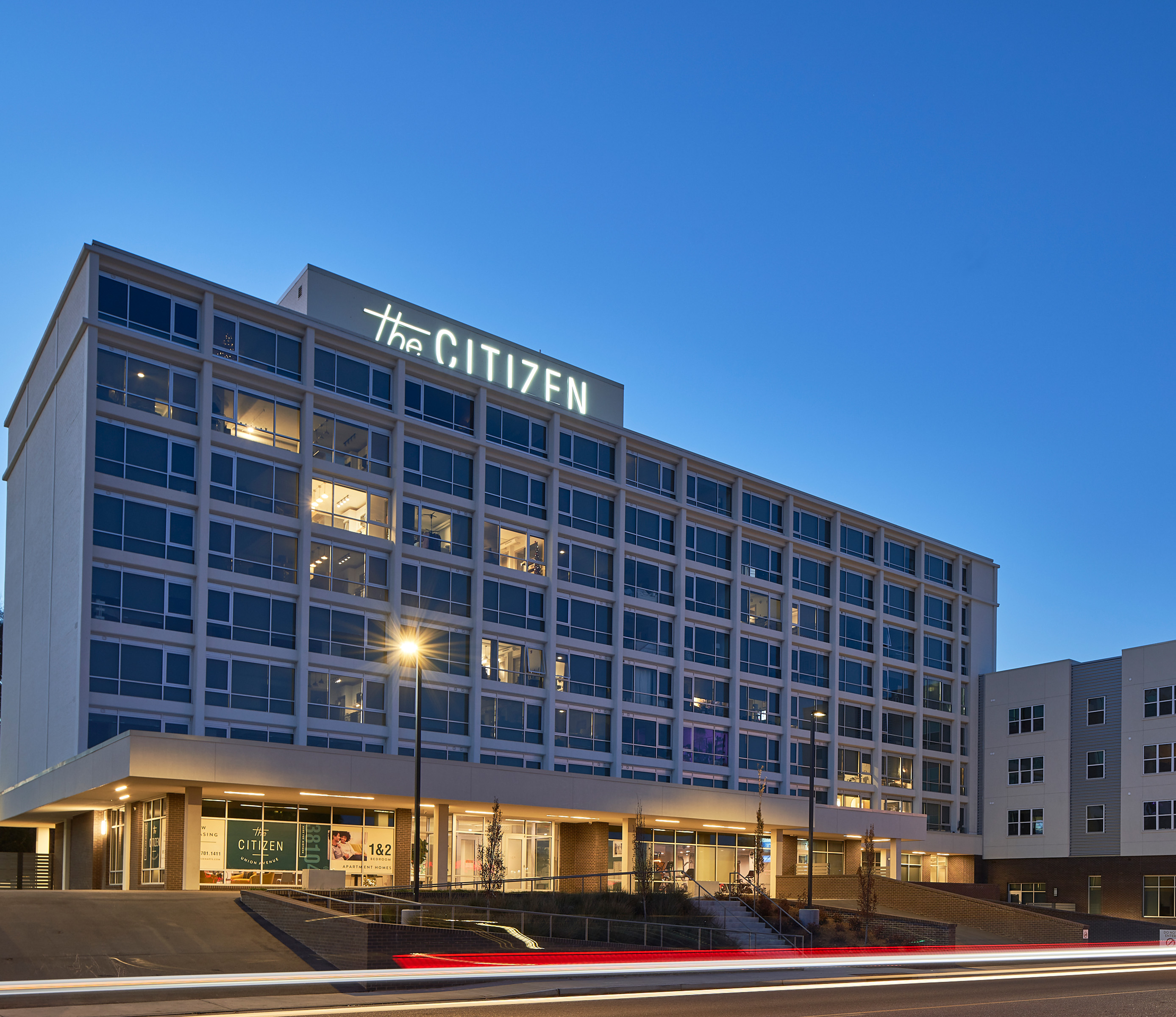 The project restores and draws upon the clean lines of an existing mid-century modern structure to create a crisp and expressive composition and iconic identity for a new mixed-use development.