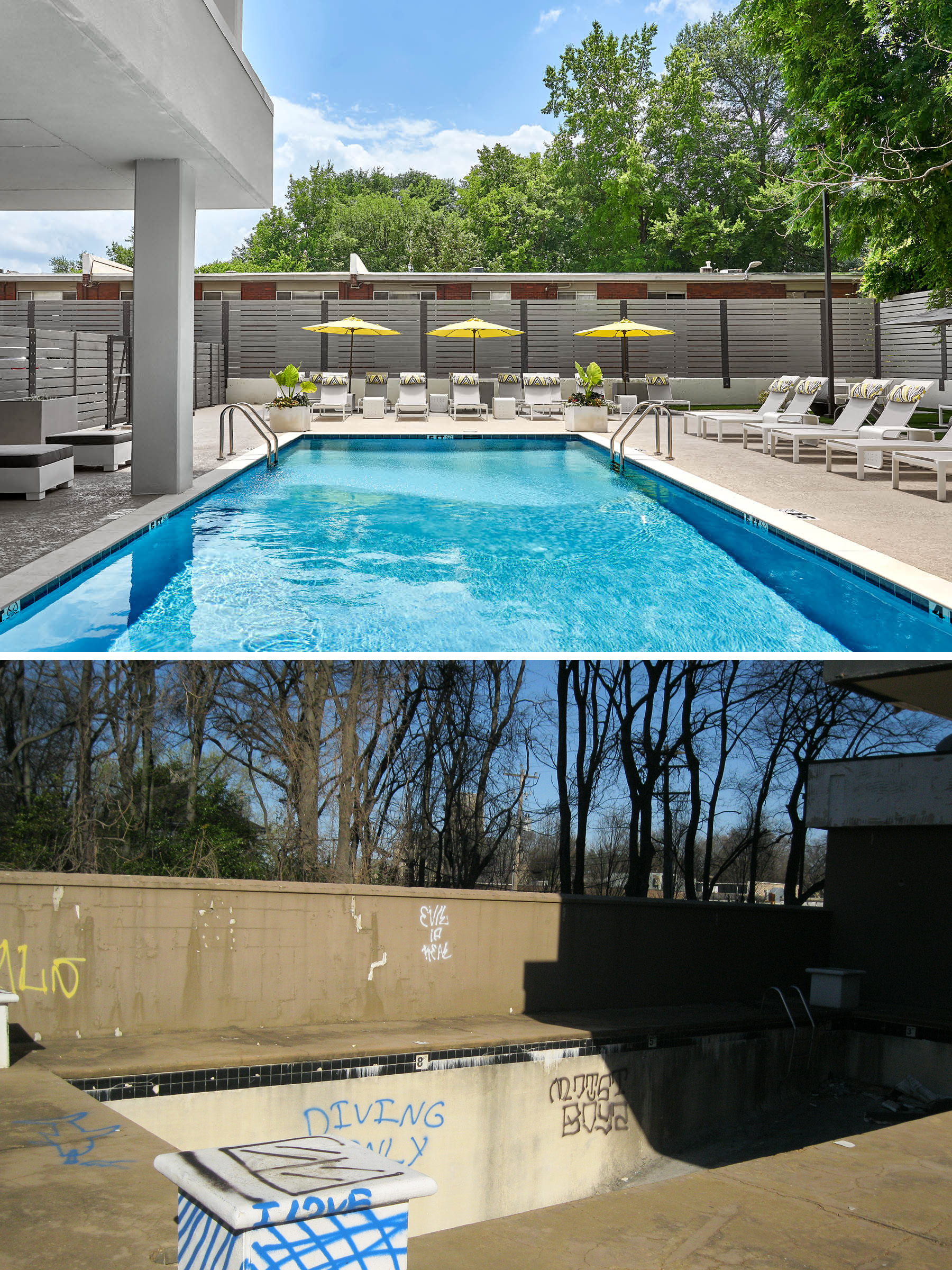 6- Nick McGinn. The existing pool deck was above the two-level, below-grade parking basement that could not be heavily modified. The pool was restored to recapture the clean lines of mid-century aesthetic.
