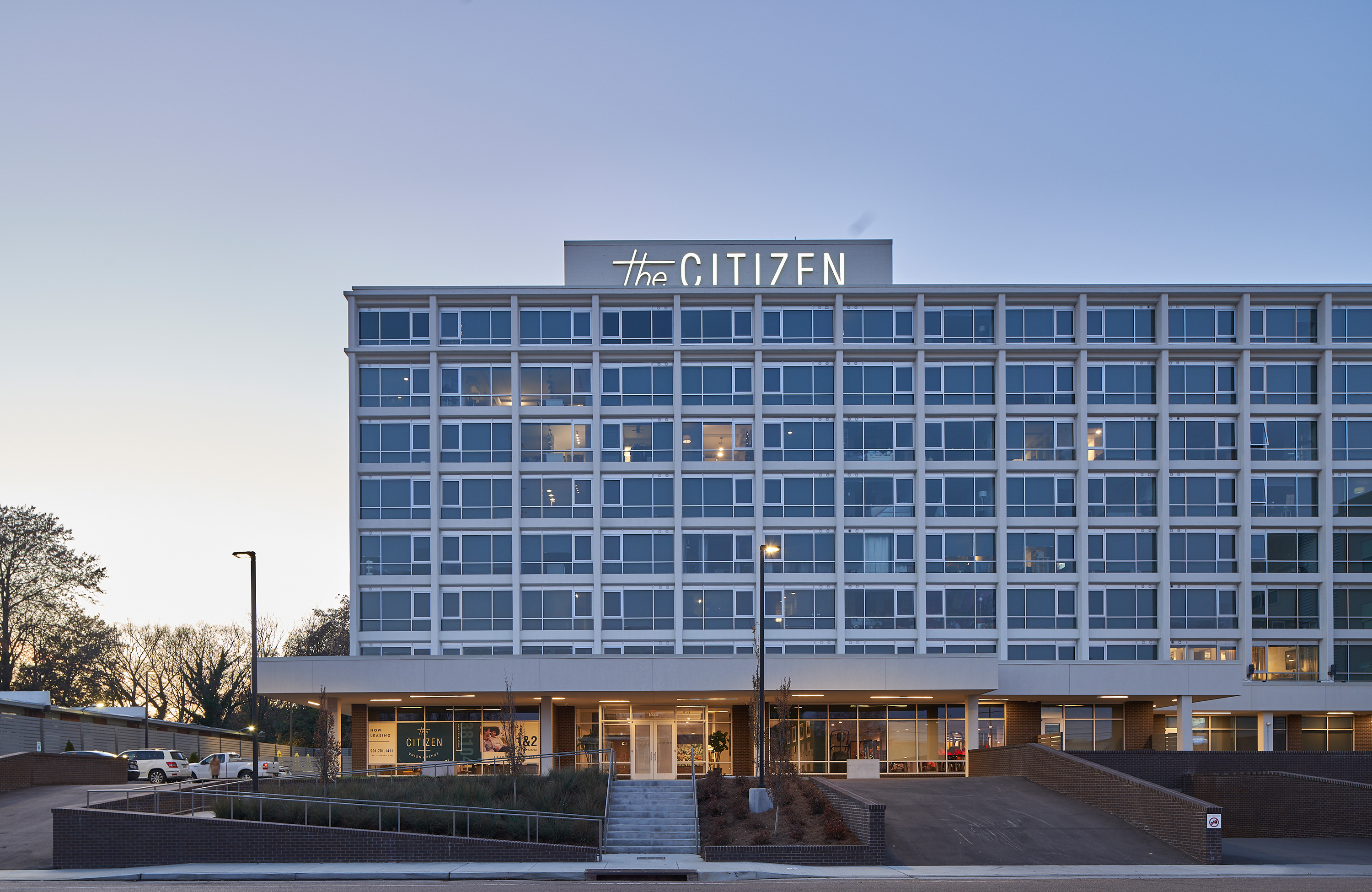 Though it is a complex exercise in adaptive reuse and urban design, the project presents itself in a clear and ordered manner, reflective of the existing building’s impressive structure. Originally constructed as a part of an internationally recognizable hotel chain with local roots, the structure is as efficient as it is iconic. Due to damage from sitting vacant for nearly a decade and low floor-to-floor heights, initial plans called for the existing building to be razed. Seeing merit in the historic structure, the design team developed plans for efficient and organized units, successfully advocating for its reuse.
