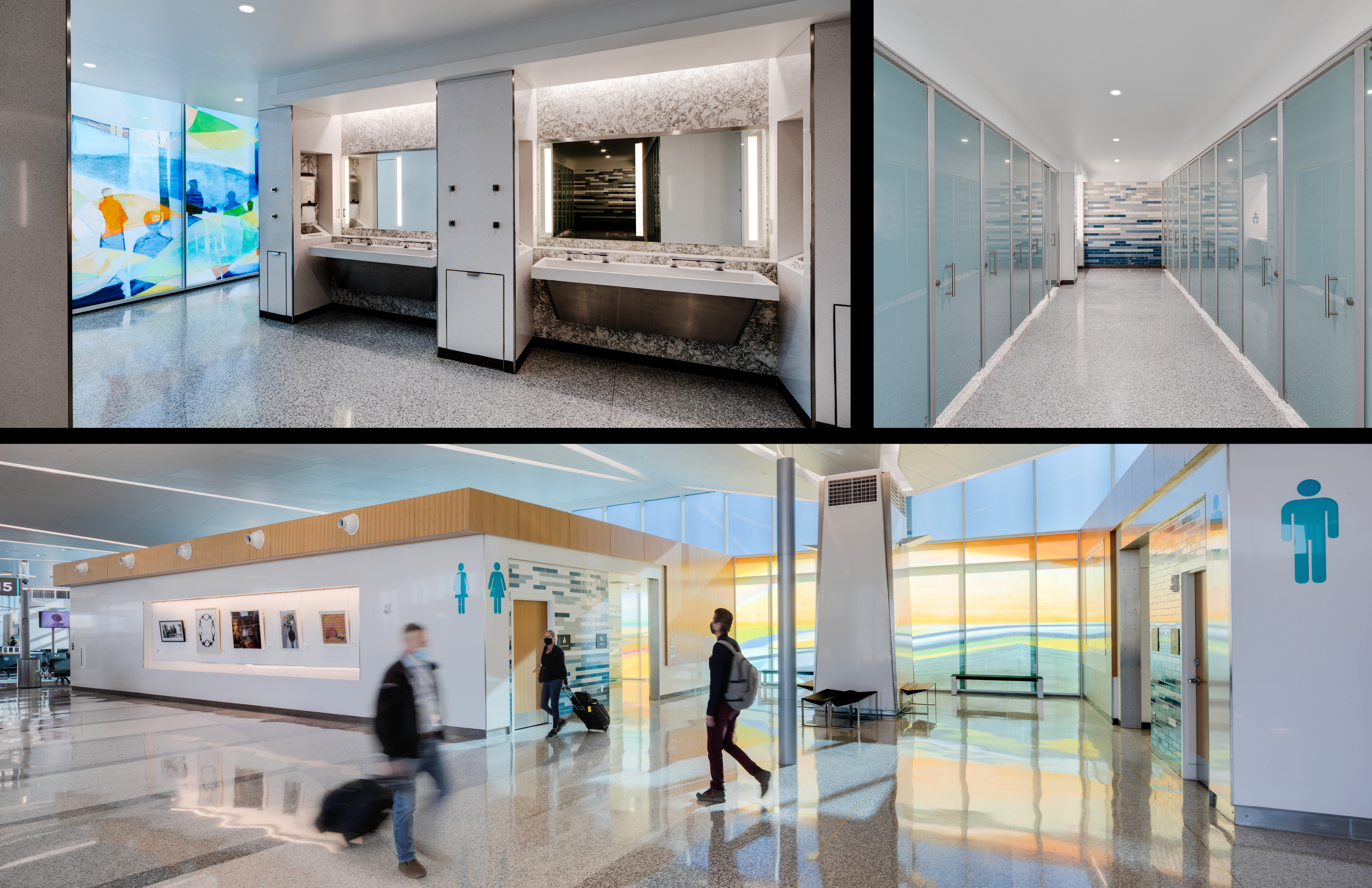 6 - Existing rotunda restroom areas renovated to match the new concourse restroom concept. Photos by Chad Mellon.