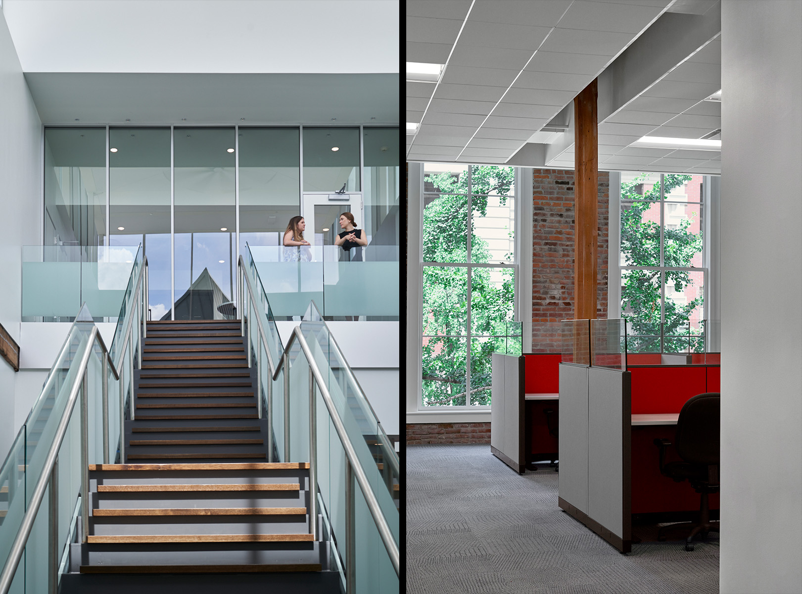 Originally built in 1871 as a pair of cotton warehouses, this three-story building now balances the charm of historic brick, wood, and cast-iron construction with demands of the twenty-first century office.