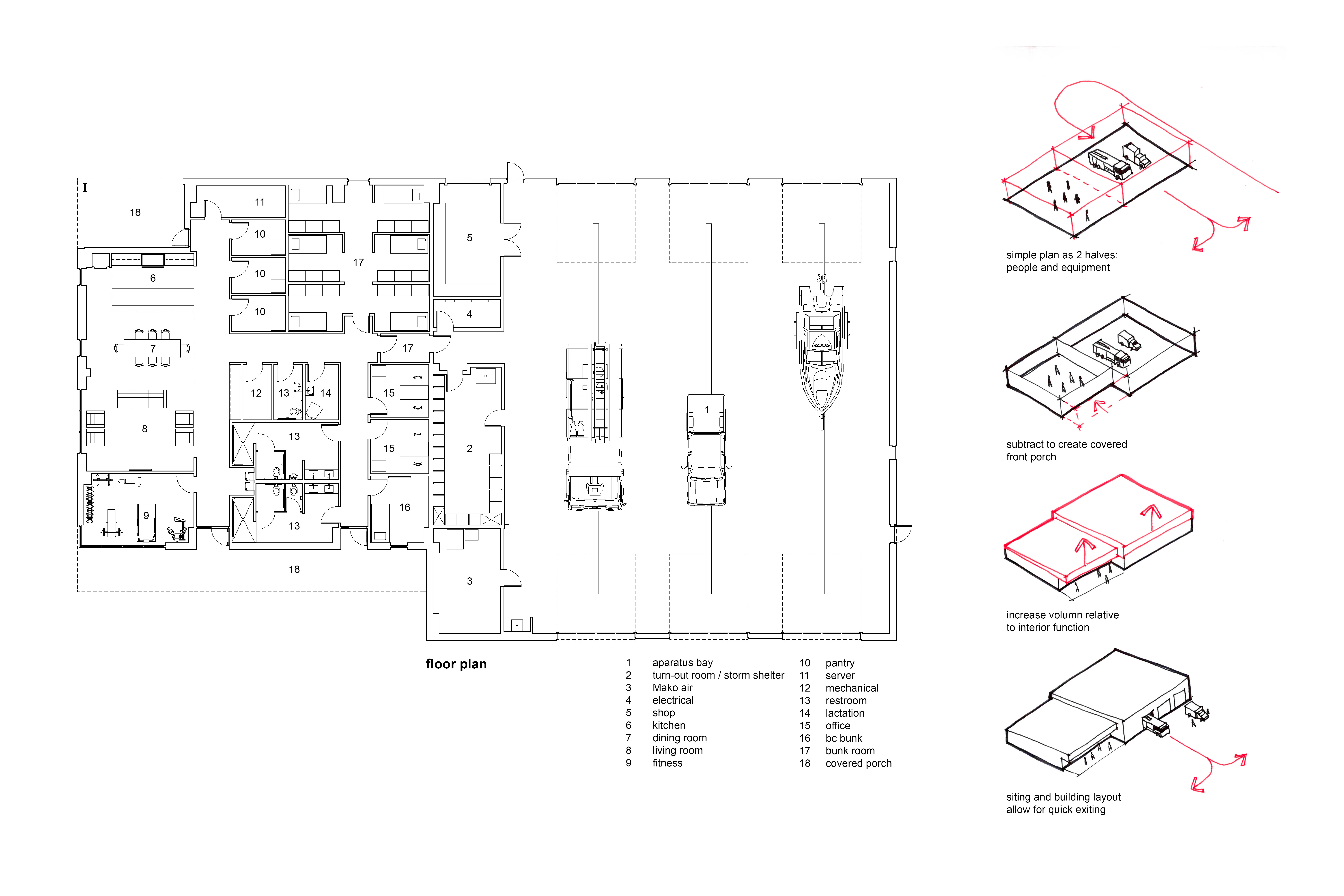 3 - The floor plan is compact with direct lines of circulation. Room adjacencies facilitate the quickest access to equipment and fastest response times to emergencies.