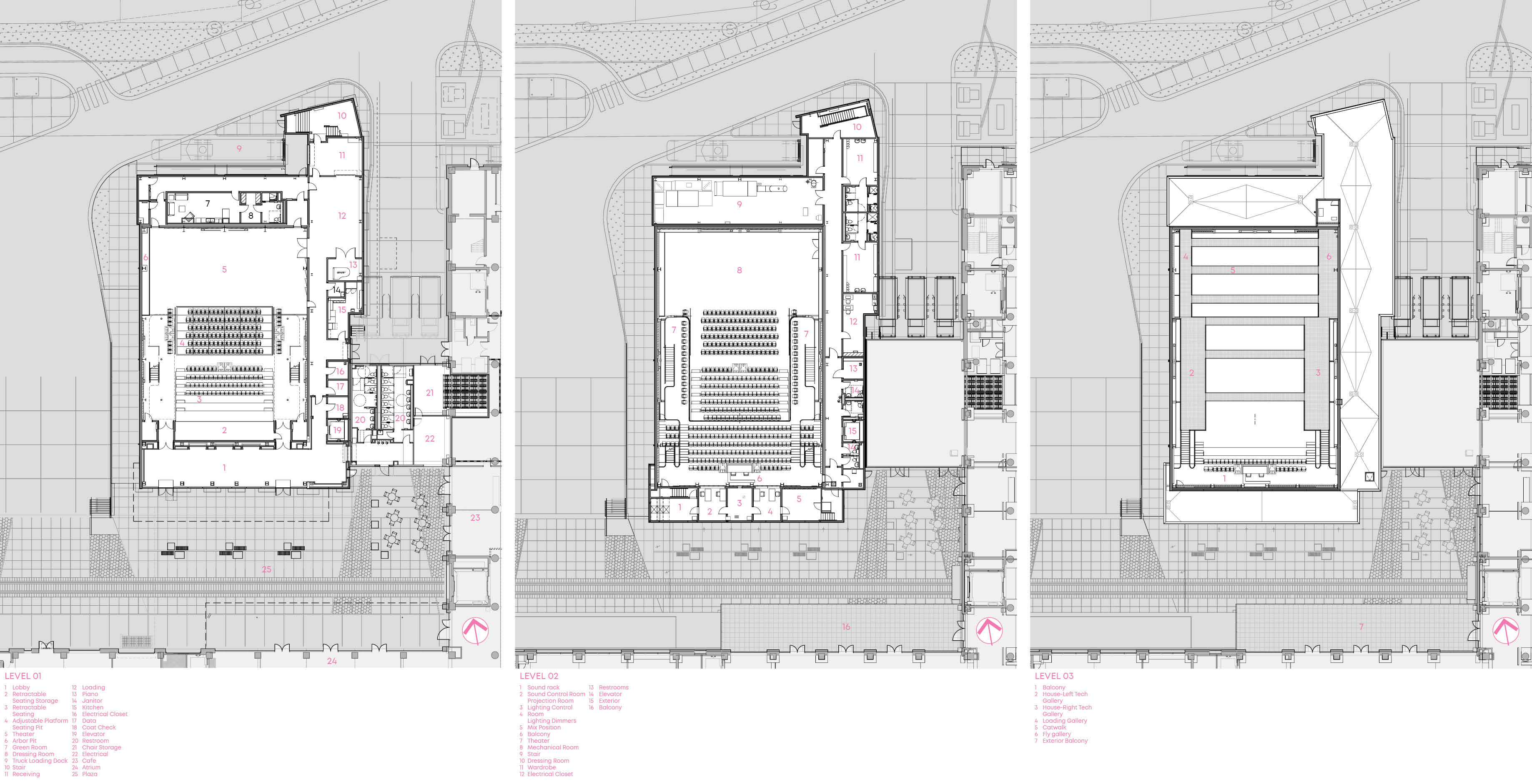 9 – Firm. The theater was tight and varied- bordered by loading docks, mechanical equipment buildings, and public plazas. Each space and component had to be located to both fit within the boundaries and serve the theater at the highest level.