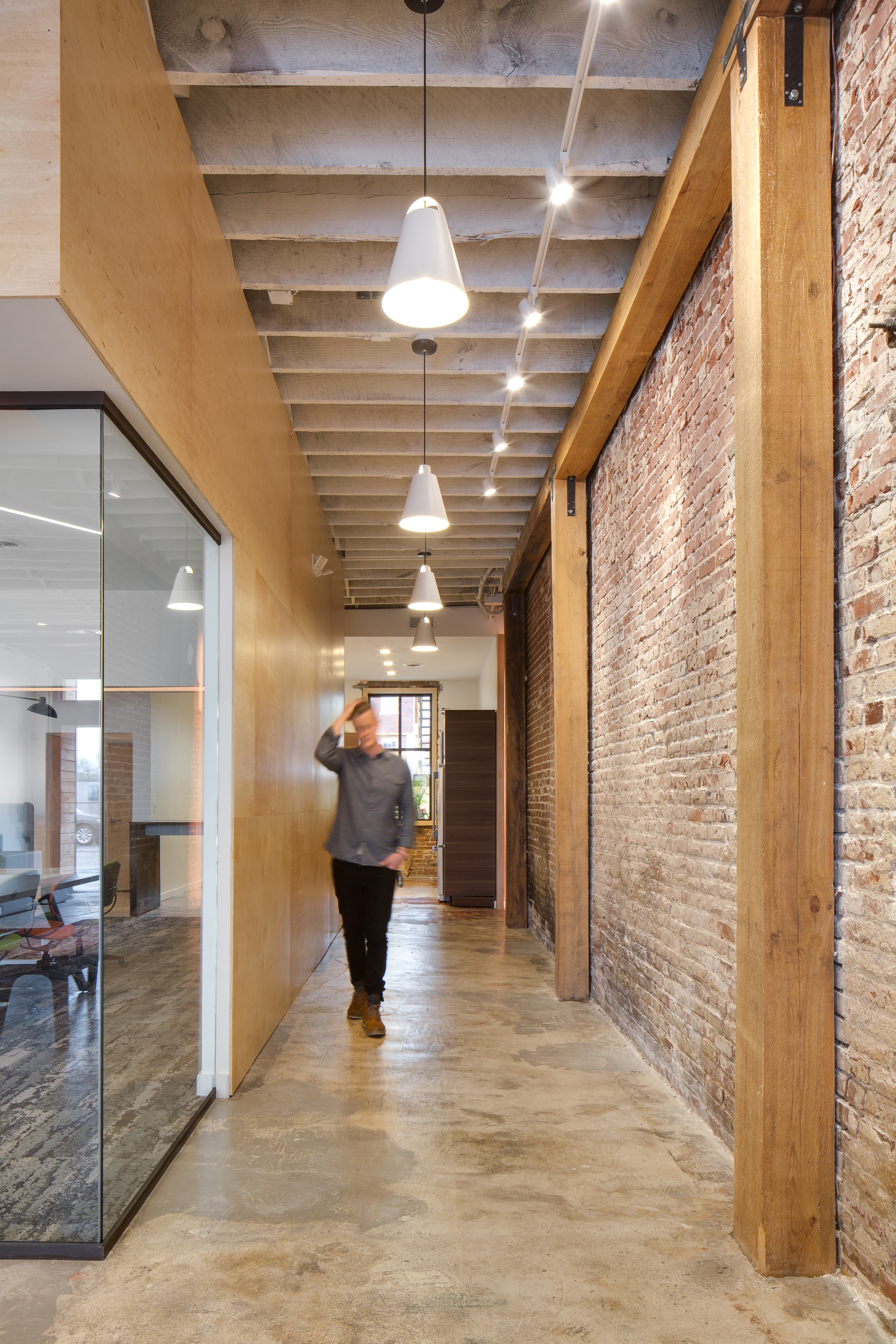 7- Photo by Chad Mellon-The second level contains the offices and open work areas for the creative team. Private offices, restrooms, and editing rooms are positioned away from the street in order to preserve views and daylight in the open-office area.