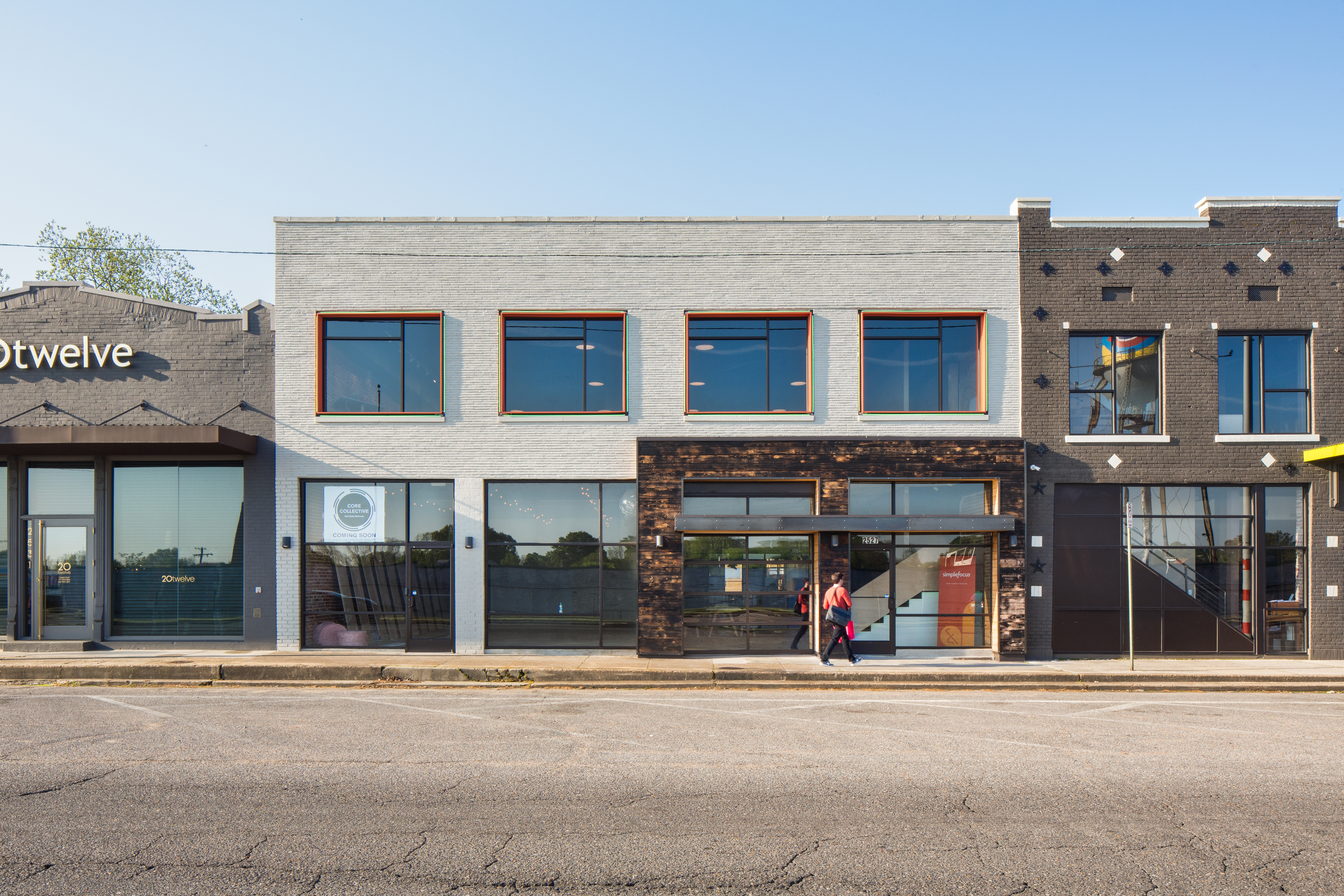 2- Photo by Chad Mellon-The clear storefront and glass garage door offer opportunities for engaging the street. The once discombobulated front façade is reorganized.