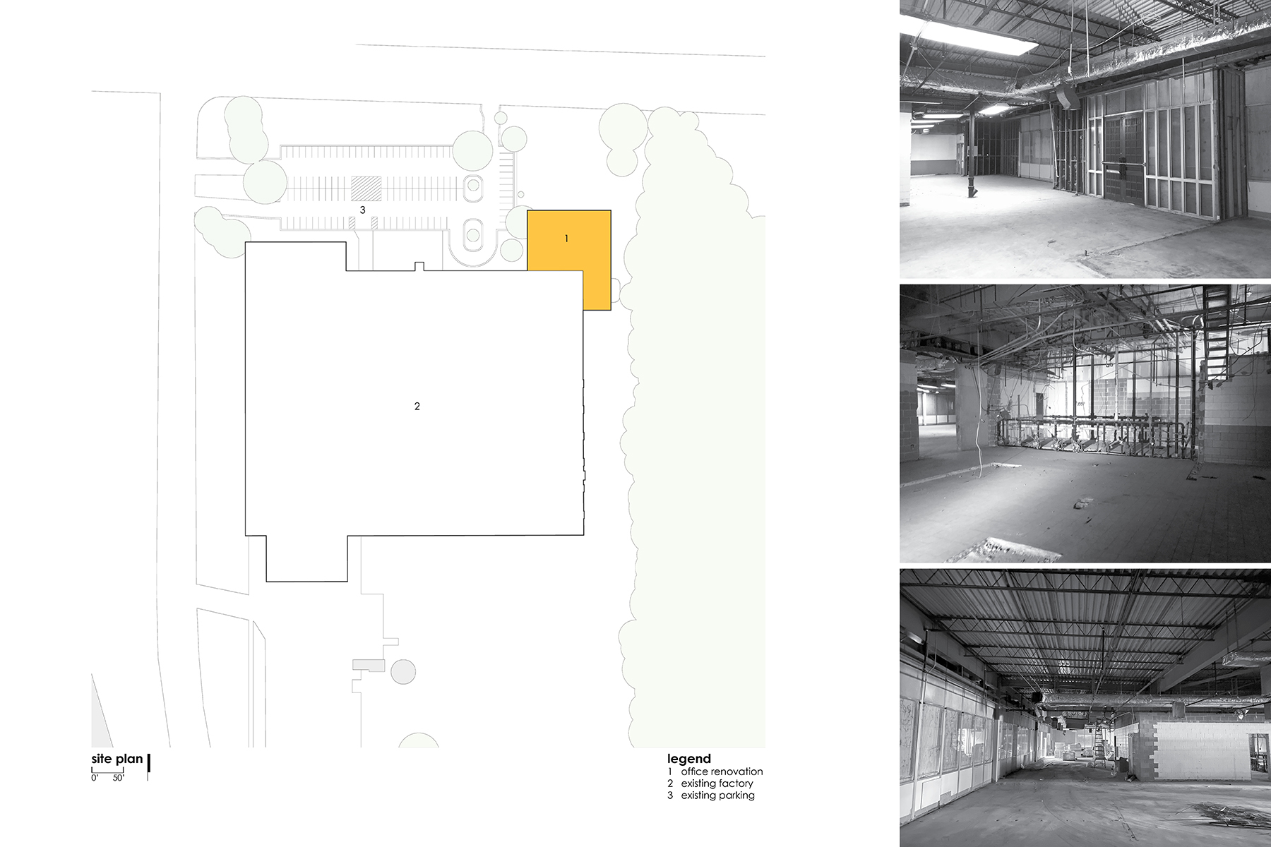 2 - Reusing the existing steel frame and roof, nearly all other walls were removed and plumbing reconfigured to create an open office and core space that bridged the divide between office and factory staff.