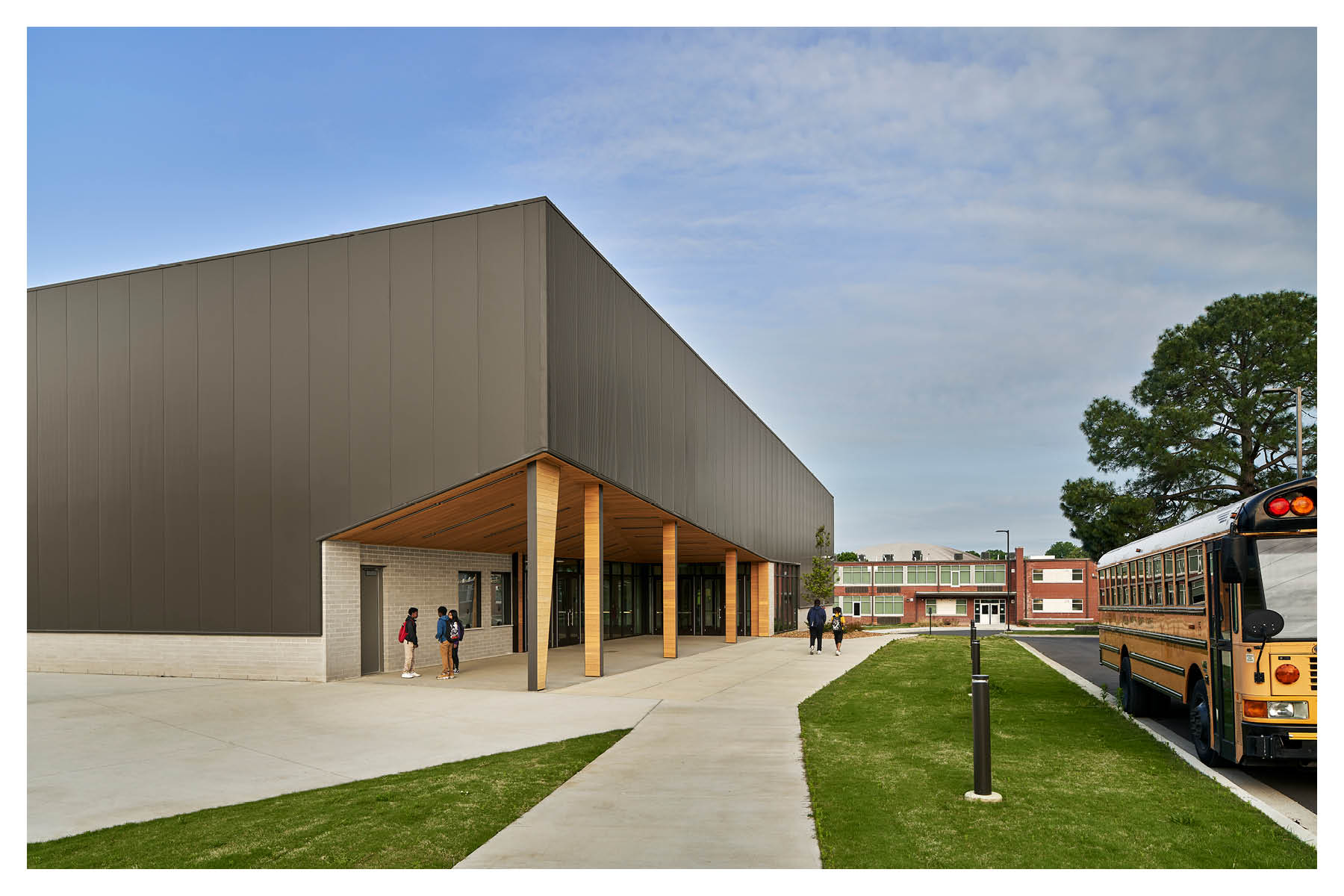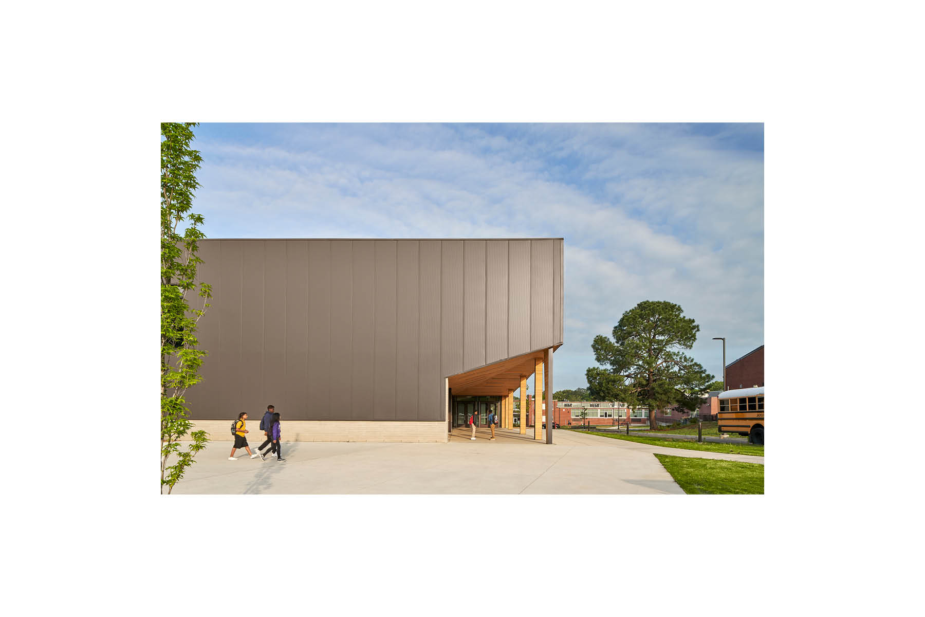 Years of planning coupled with an innovative use of public/private partners have enabled the dream of restoring this historic institution to come true. JCM Fieldhouse is the culmination of this vision in a singular state of the art gymnasium and all-school gathering space. The exposed steel structure of pre-engineered metal building and seamless integration of the building’s systems work together to deliver a sleek energy-efficient facility with natural and durable materials which will stand the test of time.