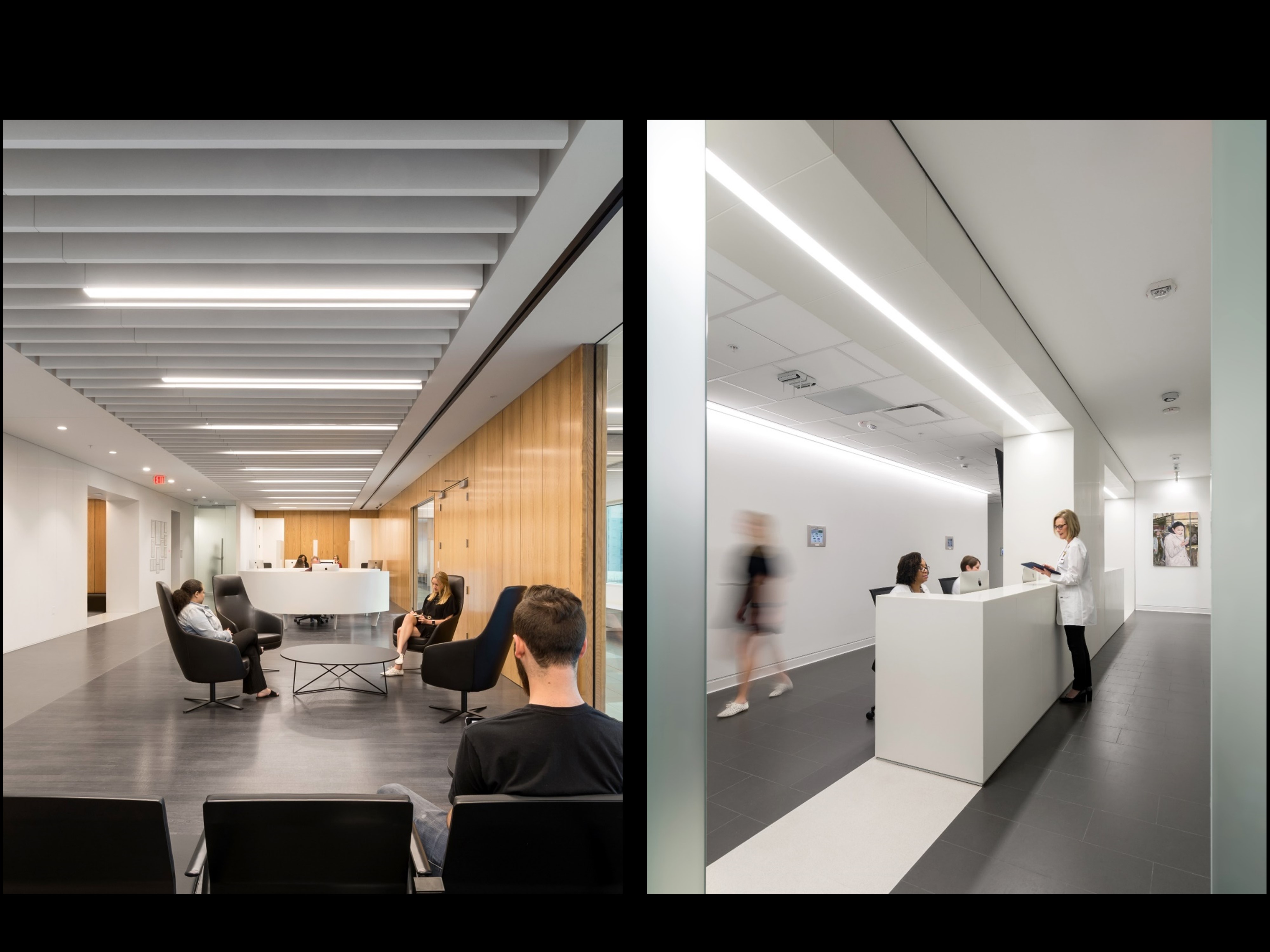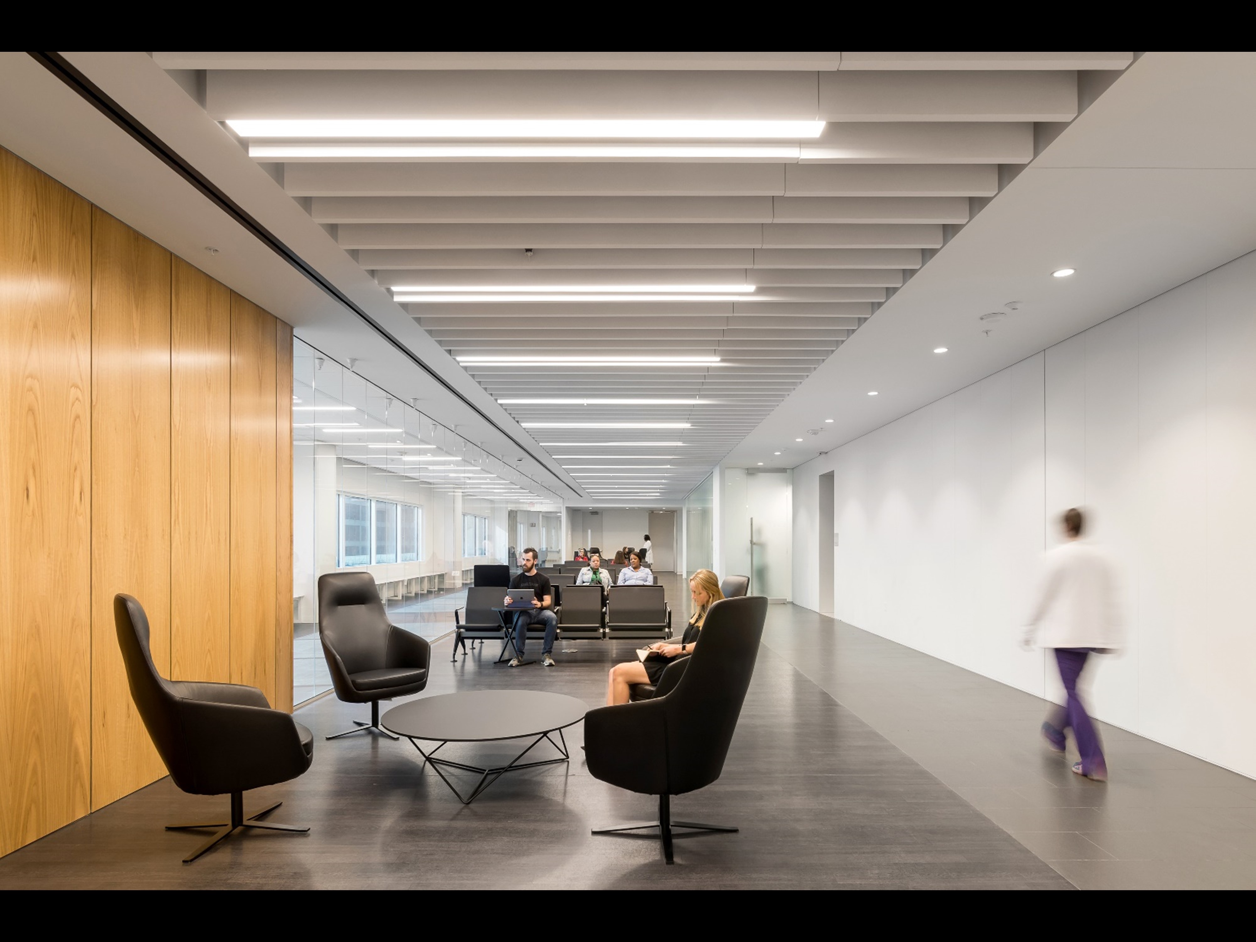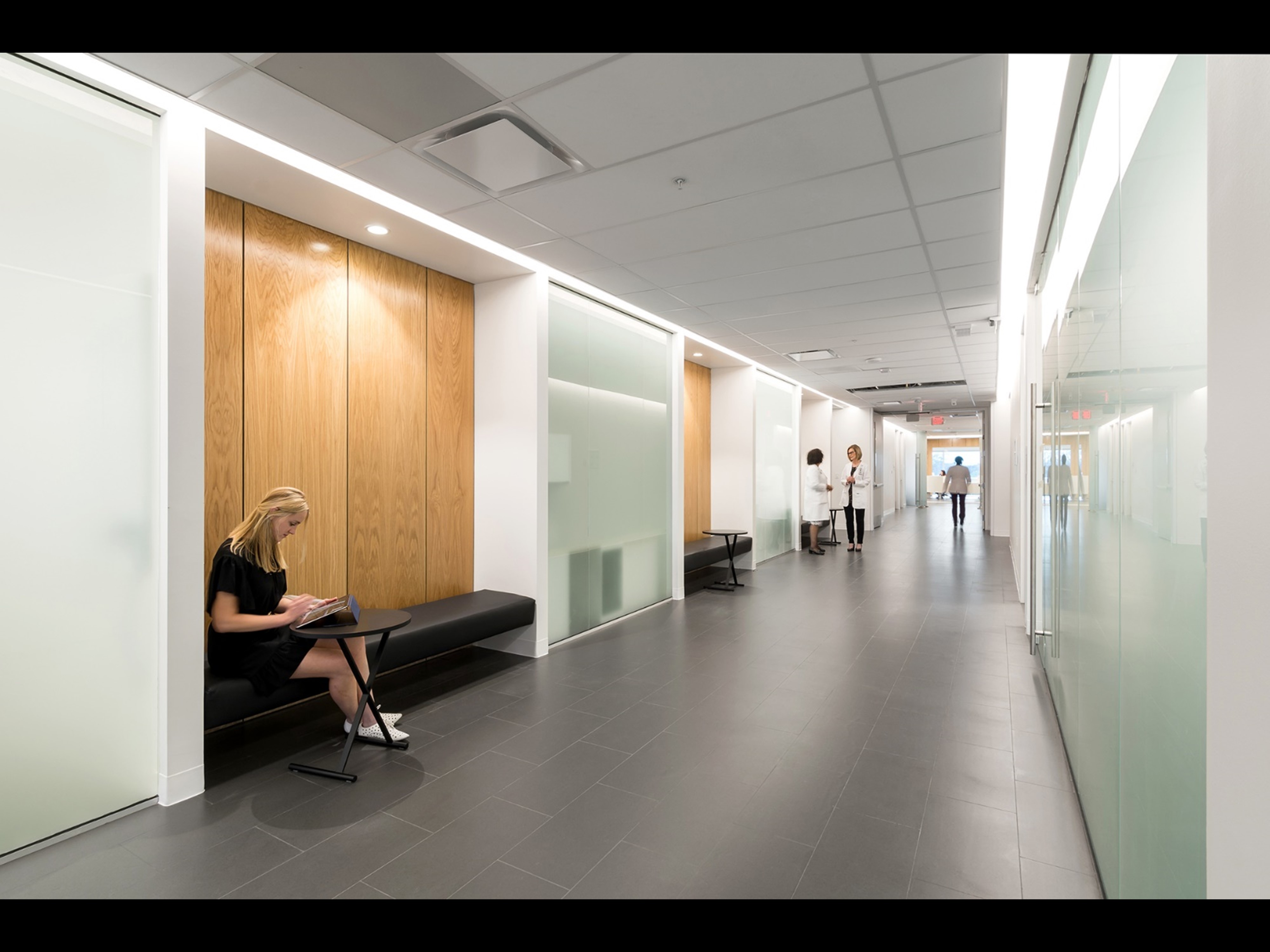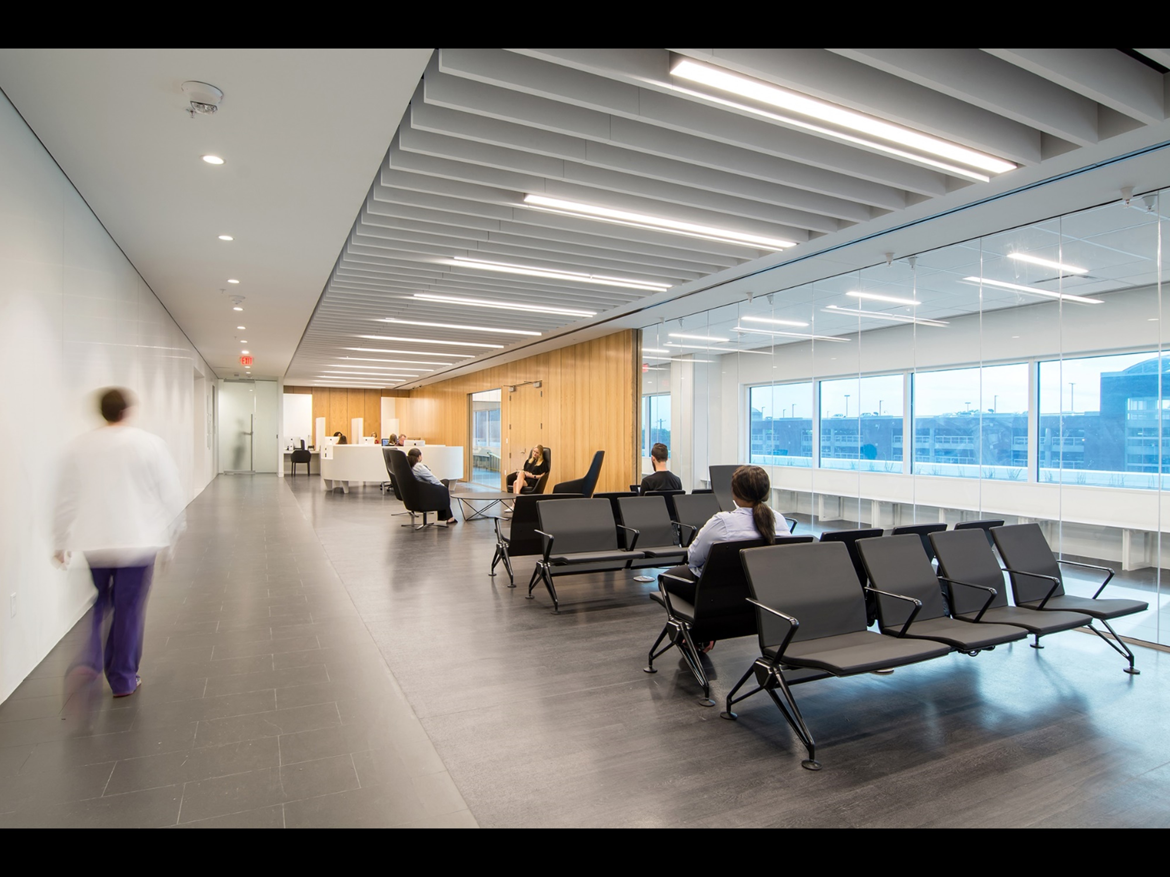 The Institute challenges a medical industry that is overly prescriptive and generally lacks the vision to invest in proven innovative design strategies that support health and healing. The team created a more humanized and progressive patient care experience that maximizes the use of actual and perceived natural daylight and materials to expedite healing while decreasing perceived wait times. Through the placement of glass layering, nearly 100% of the occupiable space has views to the outside or to daylight. The use of wood throughout further eliminates perceived dissociation with the natural environment reducing stress and supporting the healing process.