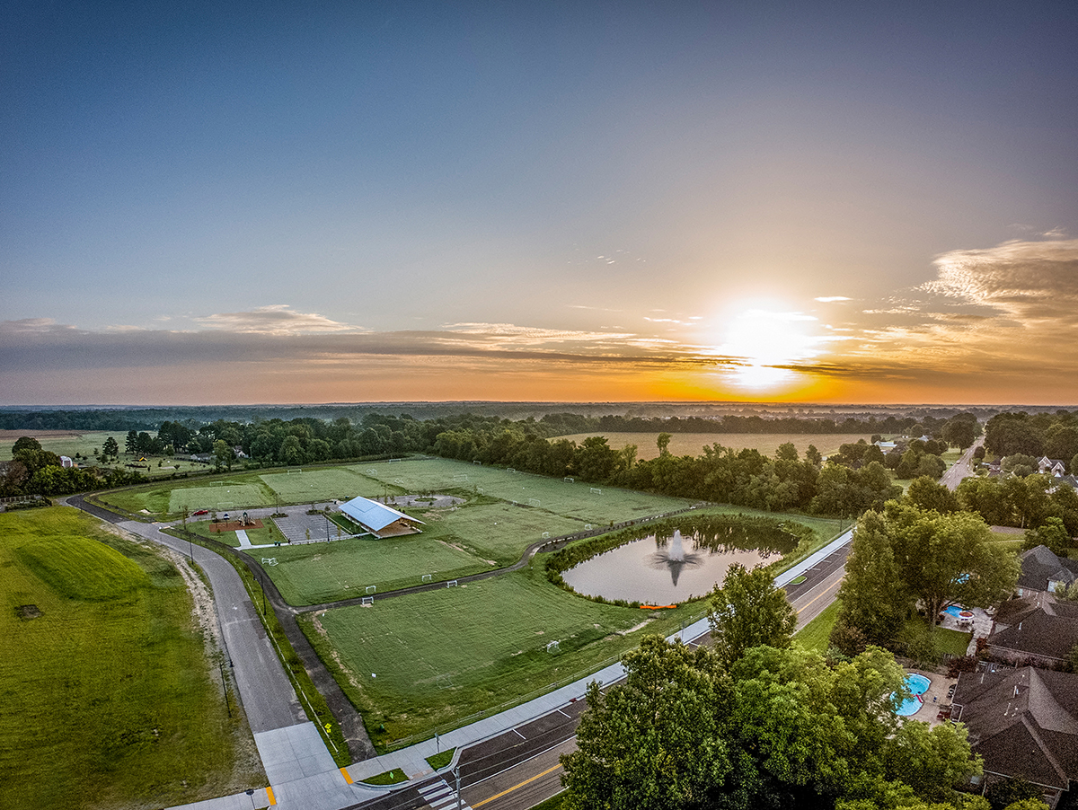 • At pavilion south end for sun and visibility from road and driveway to other park features