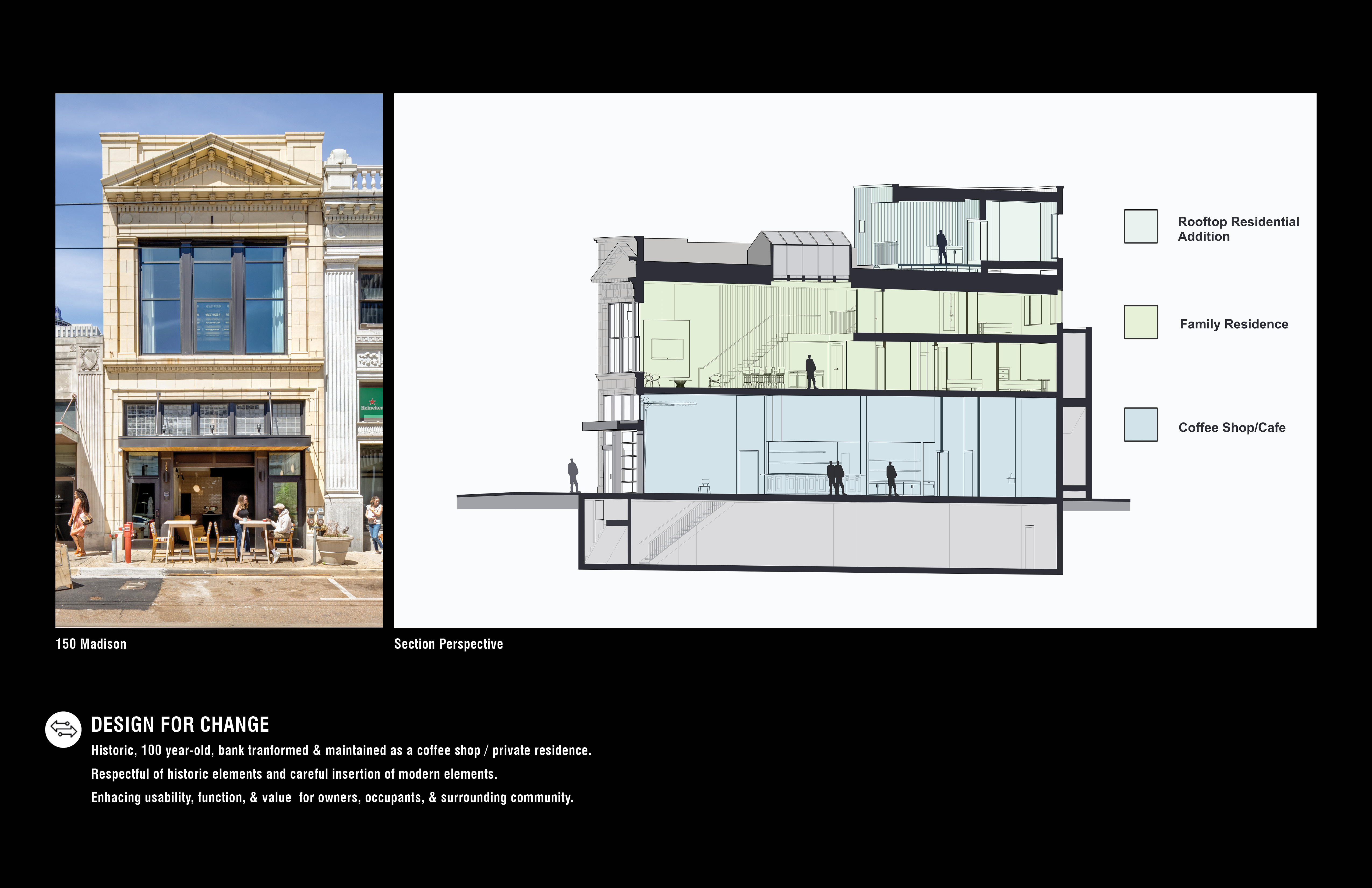 A historic building of downtown Memphis restored and maintained as a coffee shop & private residence.