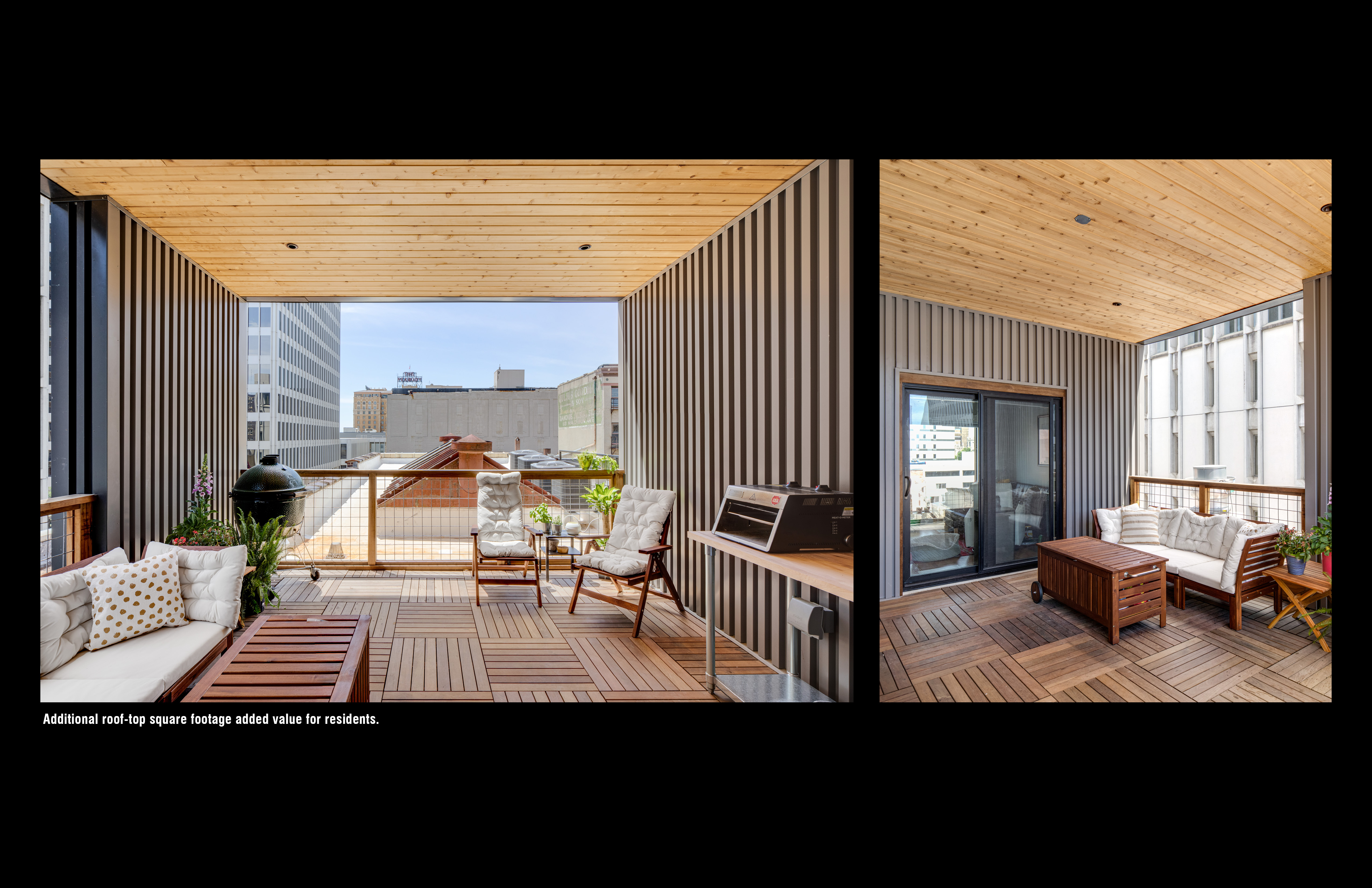 10 - The dual color metal enclosure houses the 4th level rooftop addition.