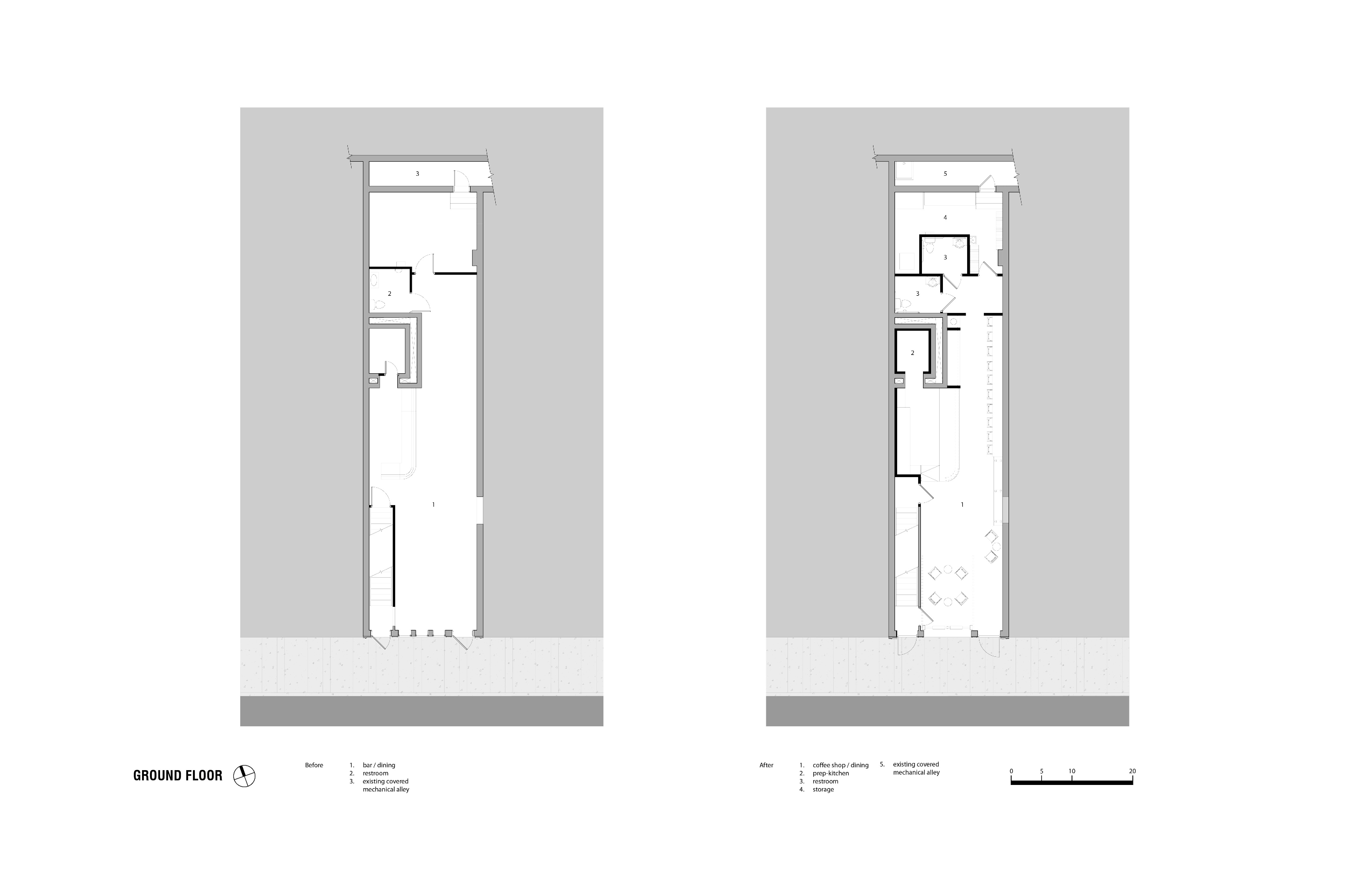 1 - The adaptation of a small downtown building into a coffee shop & residence for a contemporary young family. Photo by Chad Mellon.