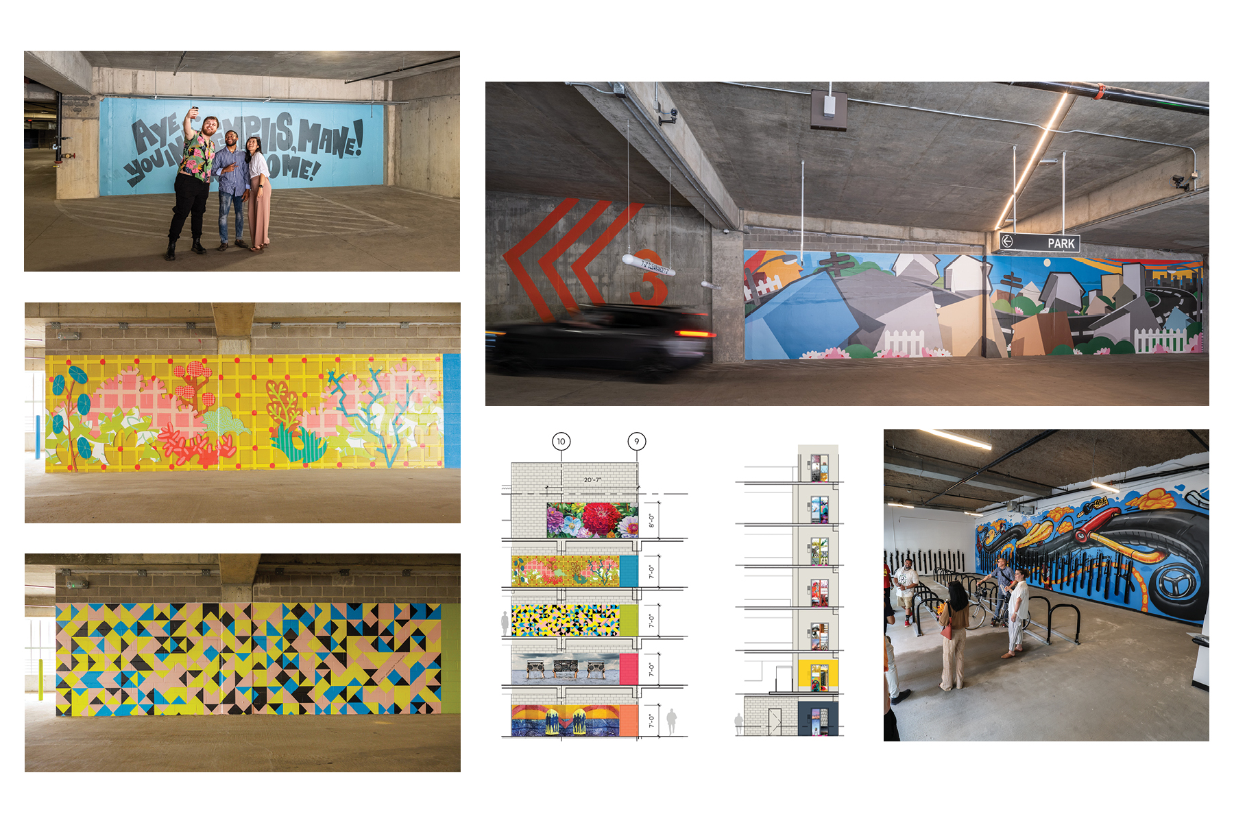 8- Local artwork flows throughout providing parking level identity. 20 local artists showcase their commissioned work, reflecting Memphis’ rich cultural diversity.